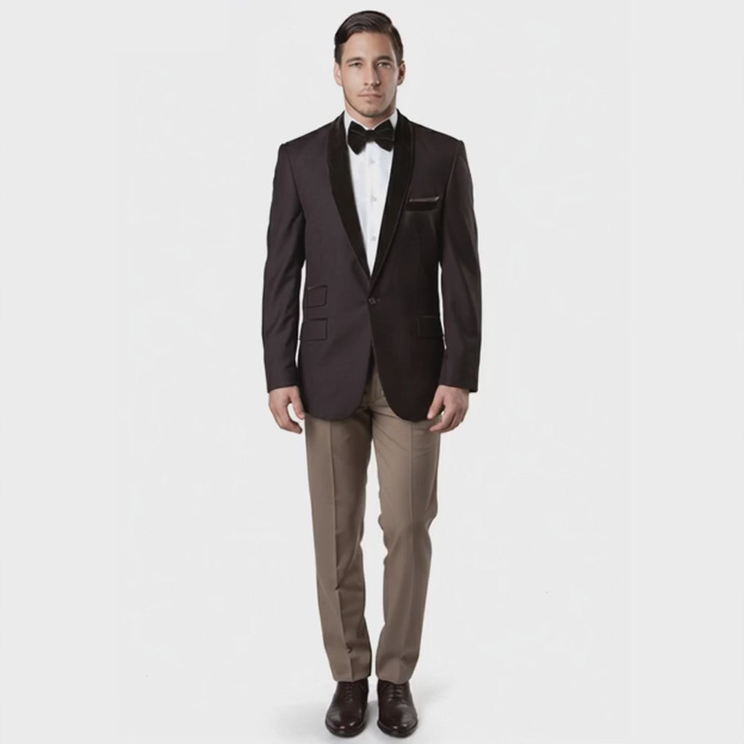 • Mens Jacket Solid With Velvet Shawl Lapel With Velvet Trim Flap Pockets For All Special Ocassions