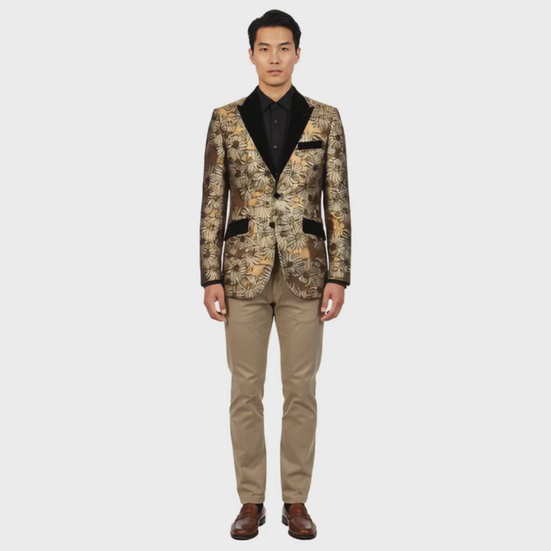 Chaquetas de traje de cena Formal Empire Show Blazers doradas/negras para hombres ME329H-01
