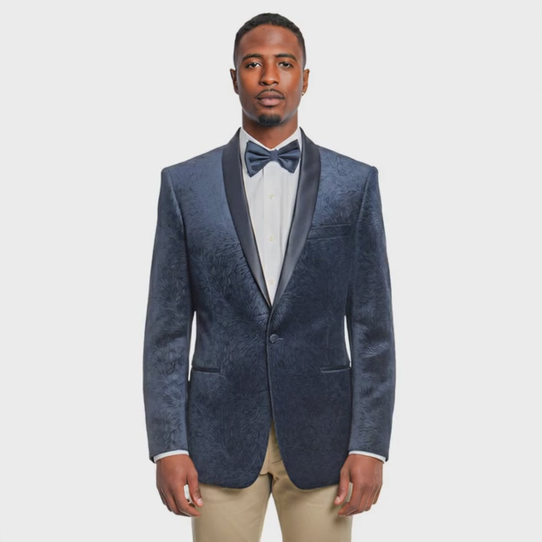 Make an unforgettable entrance in this Empire™ textured velvet dinner jacket, designed for those who own the spotlight. Featuring a luxurious “fuzzy” velvet finish that shimmers under the light and a sleek satin shawl lapel, this modern-fit blazer offers the perfect balance of classic tuxedo elegance and bold contemporary flair. Fully lined with pic stitching, underarm sweat guards, and finished with refined besom pockets, this jacket delivers both comfort and high-fashion sophistication—ideal for galas, red carpets, weddings, concerts, or upscale nightlife.