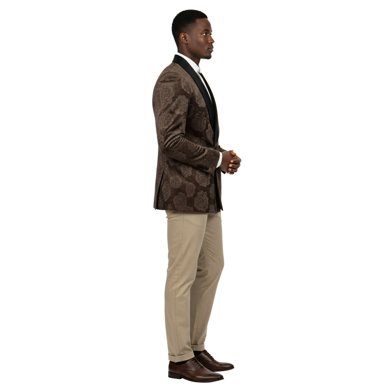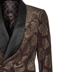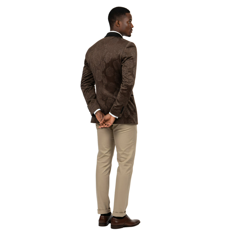 Turn heads with the Empire™ Rust Floral Blazer, a bold expression of luxury and confidence. Featuring a deep rust base with an embossed floral rose texture, this jacket captures a perfect balance between modern sophistication and timeless flair. The satin shawl lapel adds a refined contrast, while the Hybrid Fit delivers a tailored silhouette with all-day comfort and mobility.