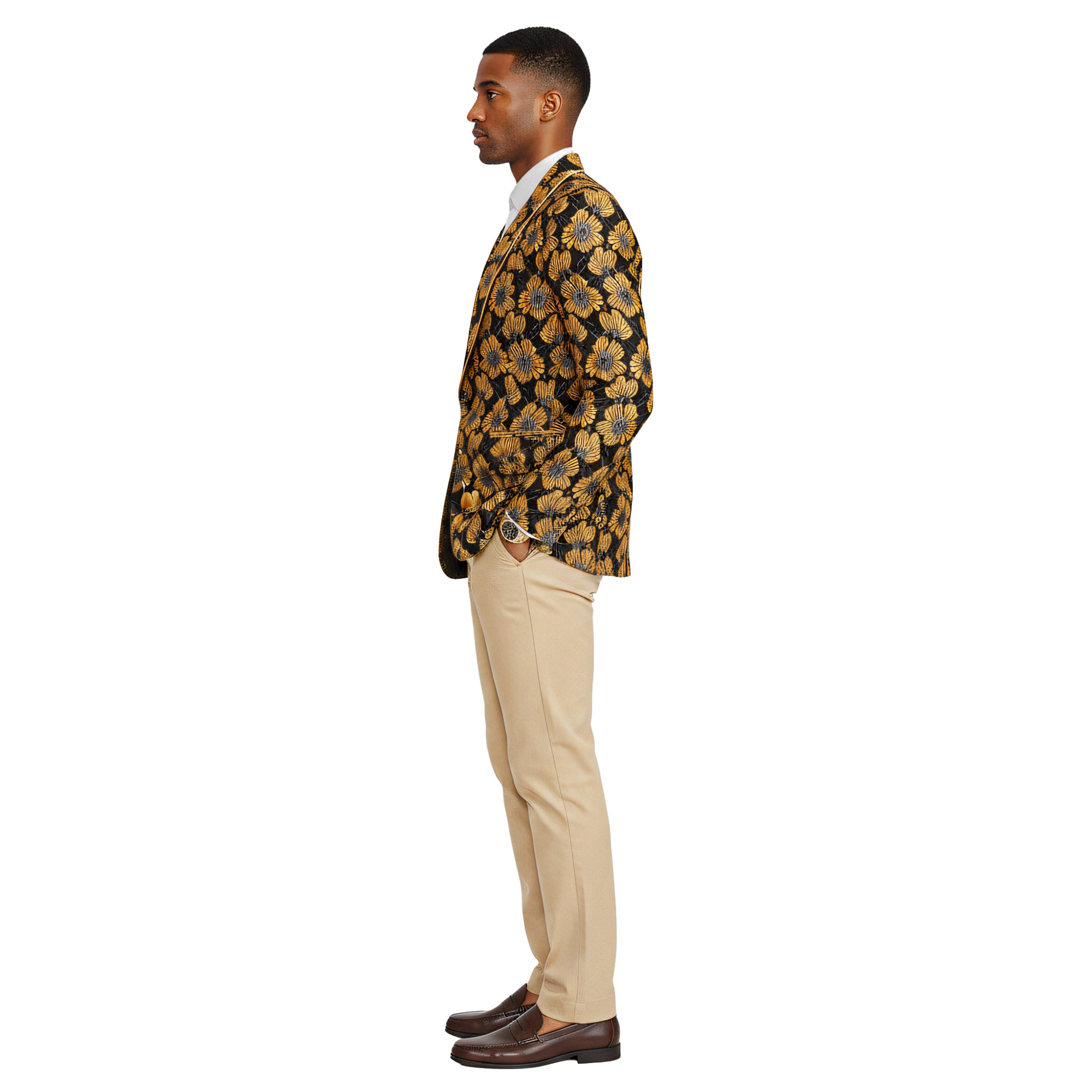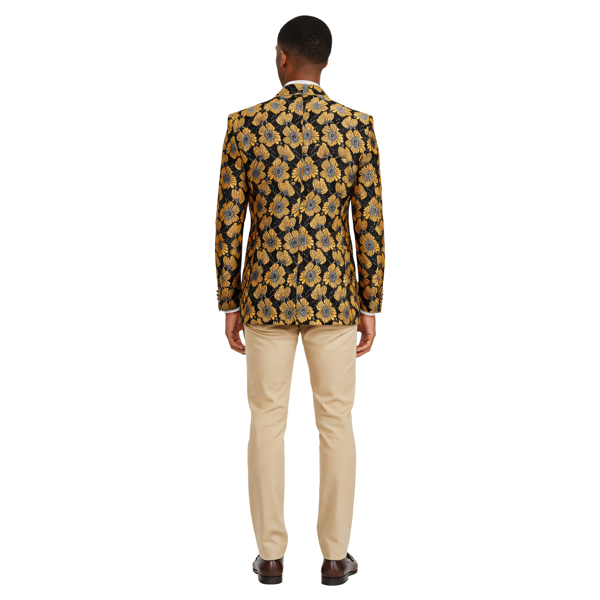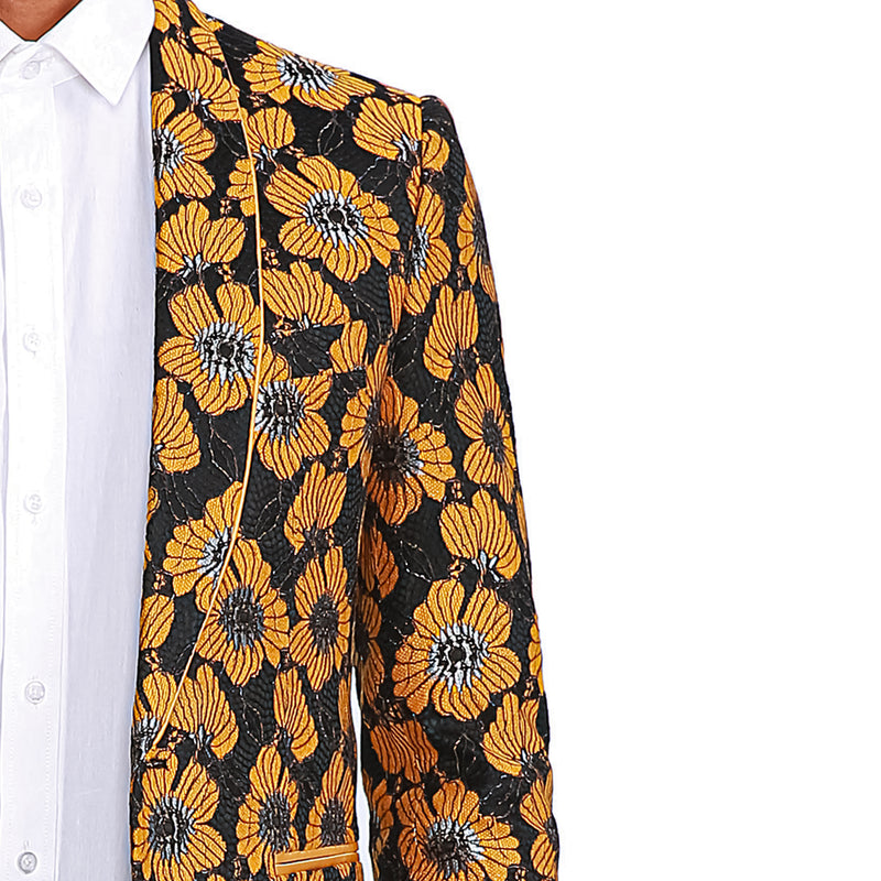 Empire™ Black & Yellow Floral Hybrid Fit Blazer — timeless elegance with a bold modern twist.