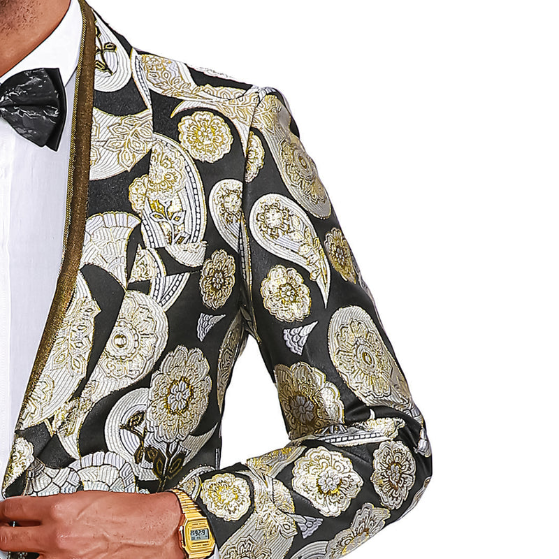 Empire™ Black & Gold Paisley Brocade Hybrid Fit Blazer — sophistication that speaks volumes.