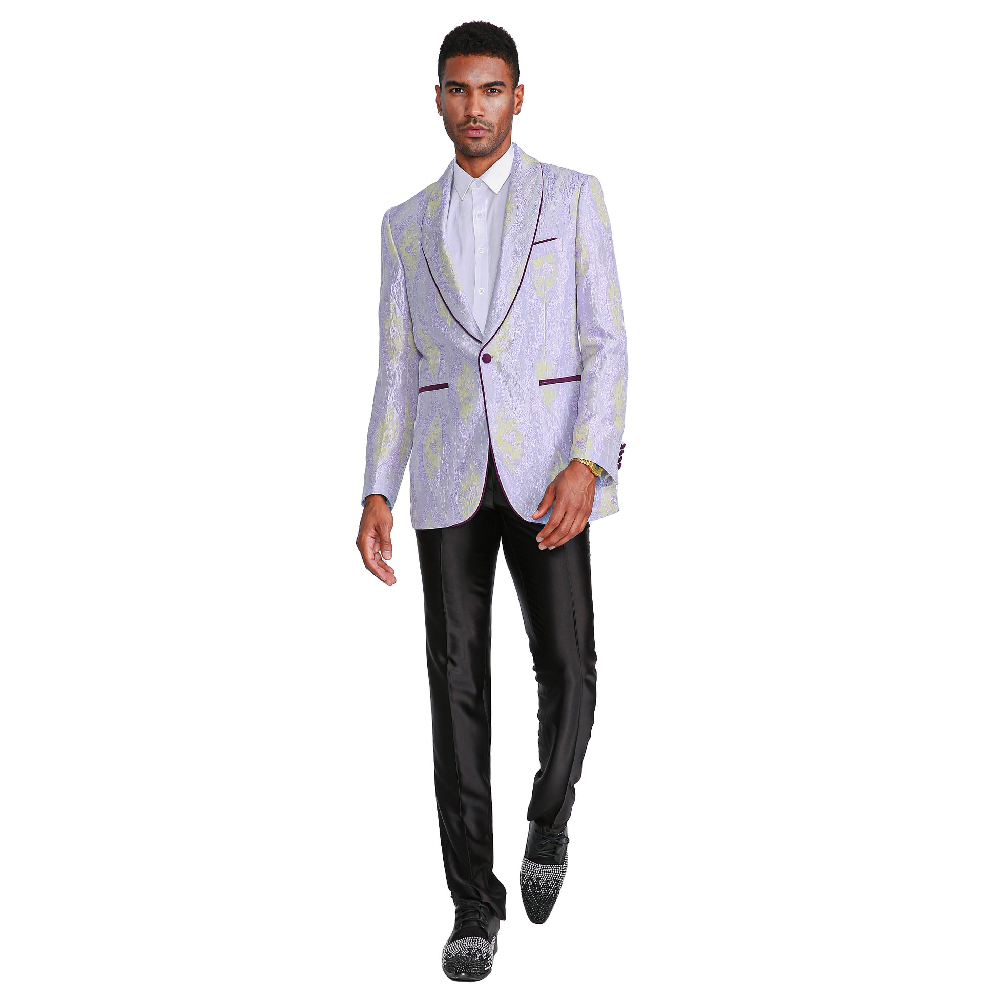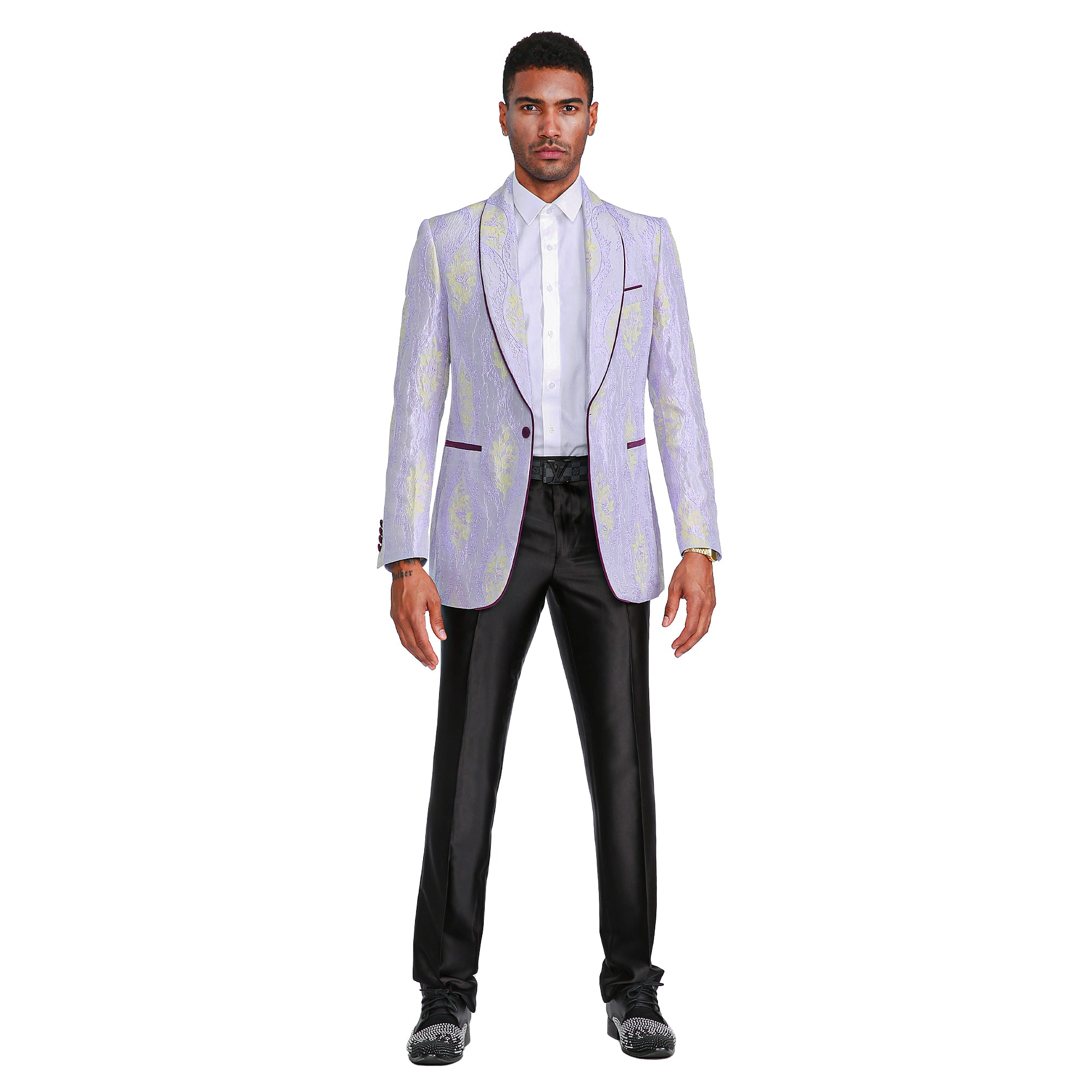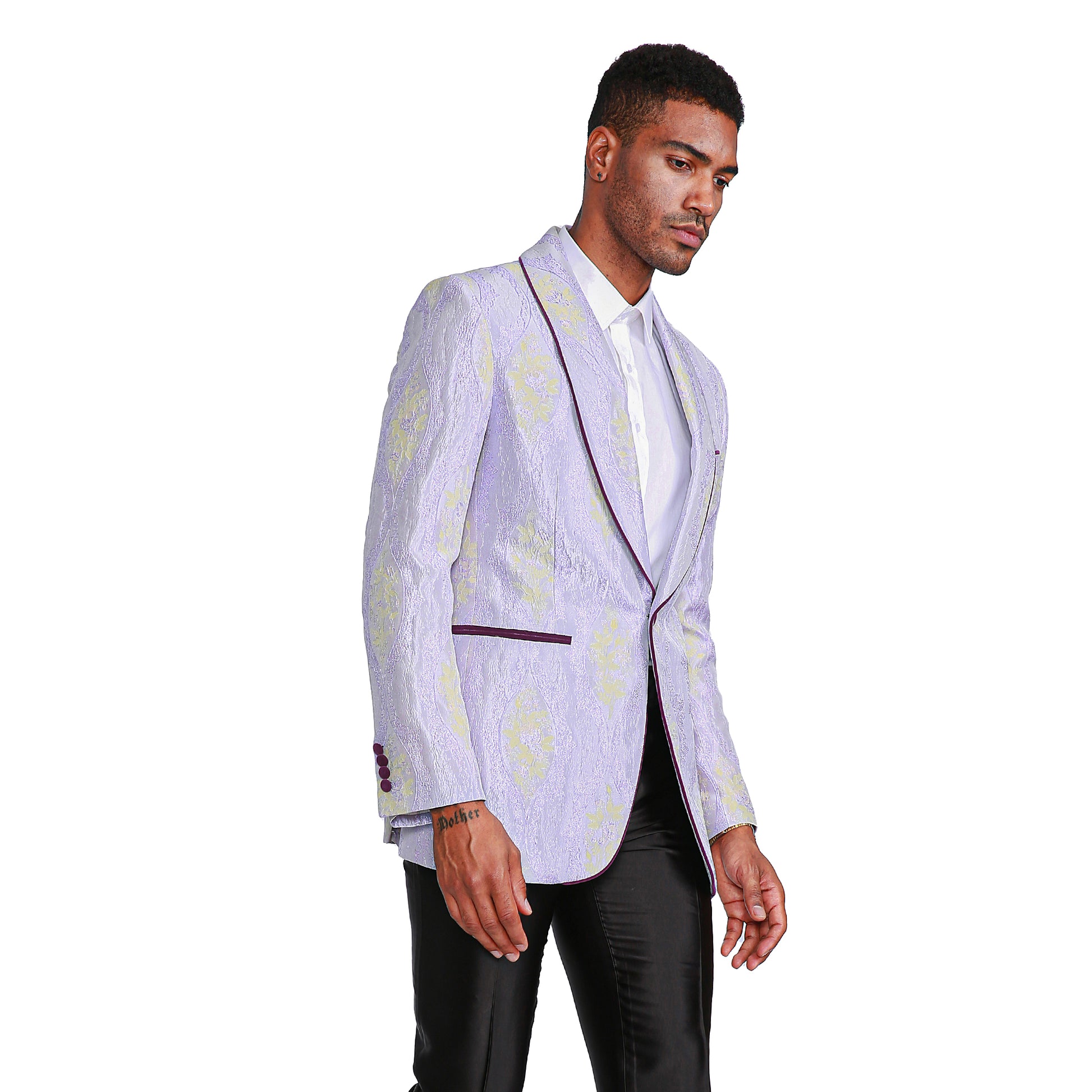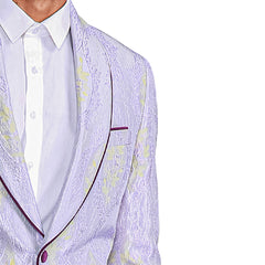 Turn heads in the Empire™ Lilac & Yellow Floral Hybrid-Fit Blazer, a luxury statement piece crafted for those who embrace bold sophistication. The vibrant yellow floral jacquard pattern woven across a rich lilac purple base creates a striking visual contrast, while the satin-trimmed shawl lapel adds a touch of refined glamour. Designed in a Hybrid Fit, it offers the perfect balance between tailored precision and all-day comfort, ensuring a confident silhouette for any high-profile occasion.