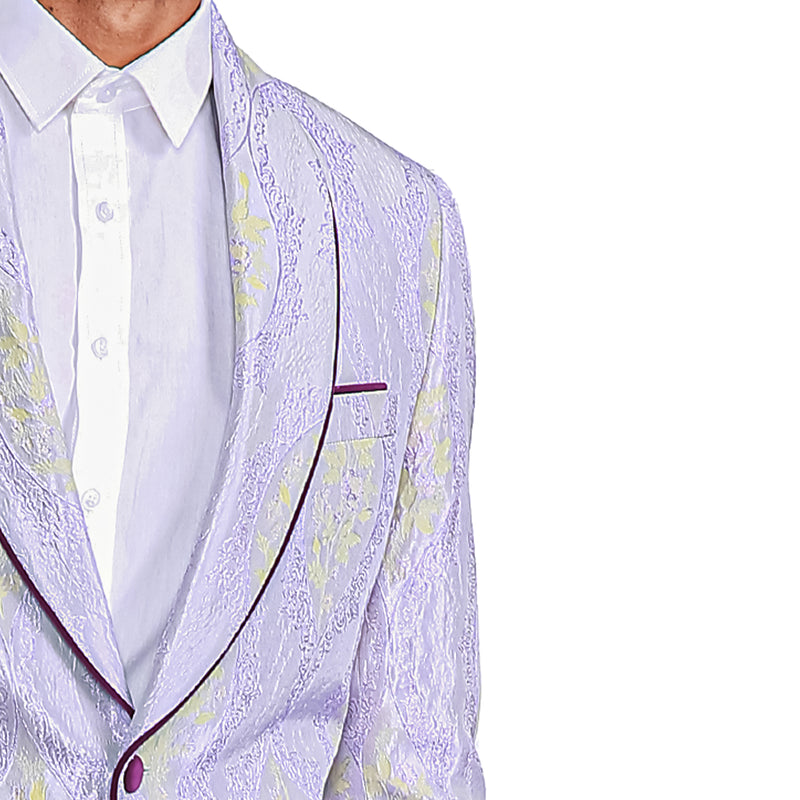 Empire™ Lilac & Yellow Floral Jacquard Hybrid Fit Blazer — elegance, confidence, and artistry in one statement piece.