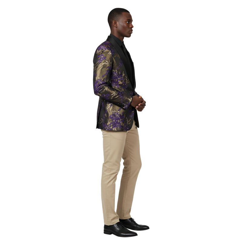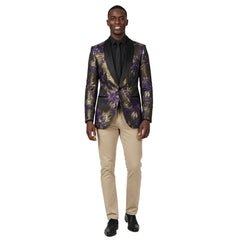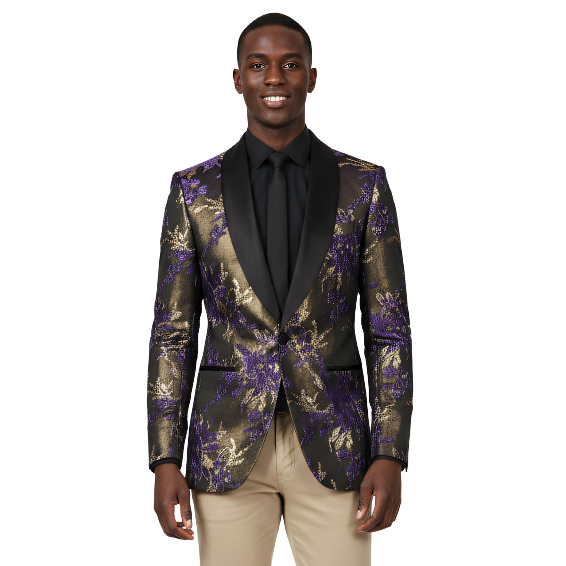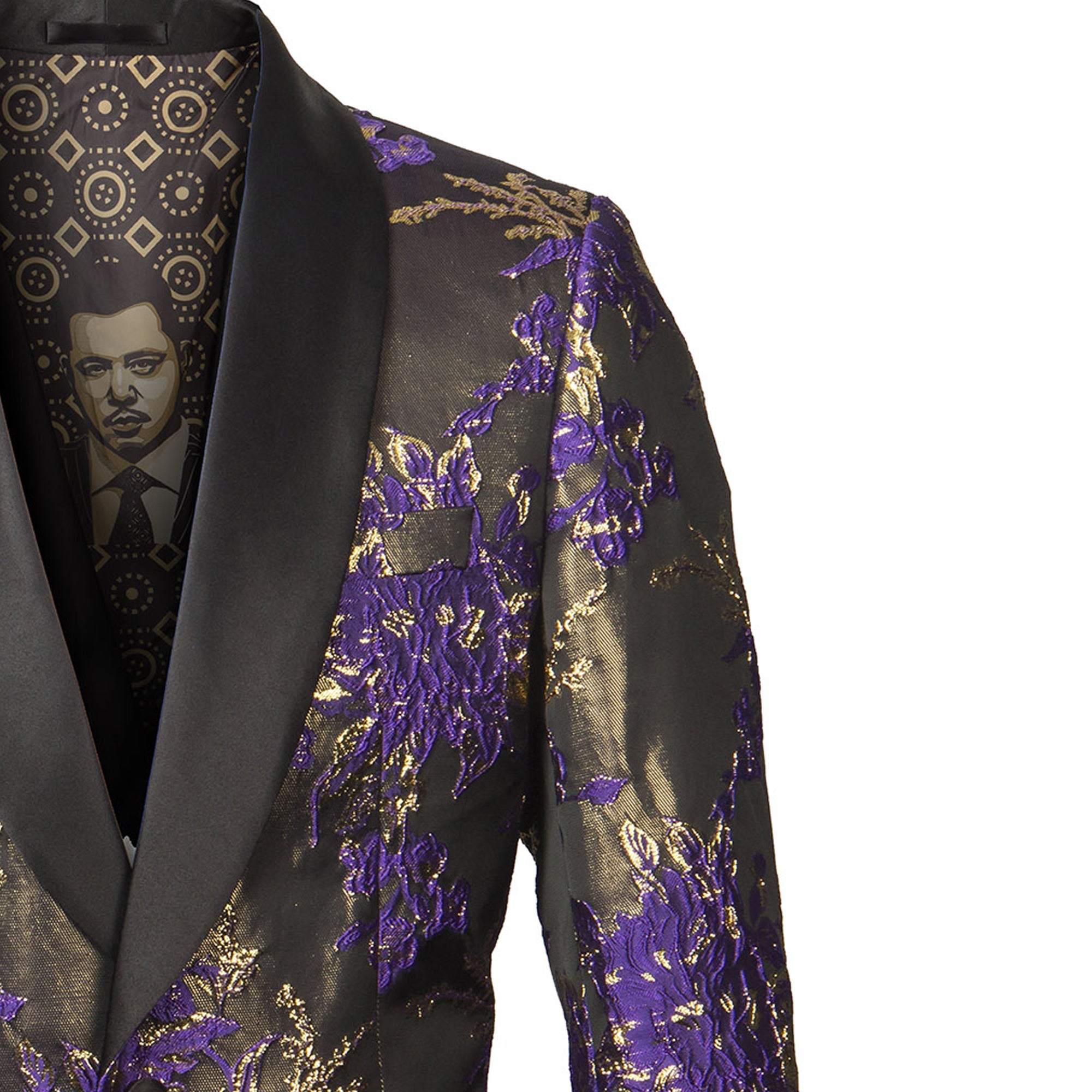 Empire™ Series Mens Blazer Hybrid-Fit Floral, Shawl Collar, Purple and Gold