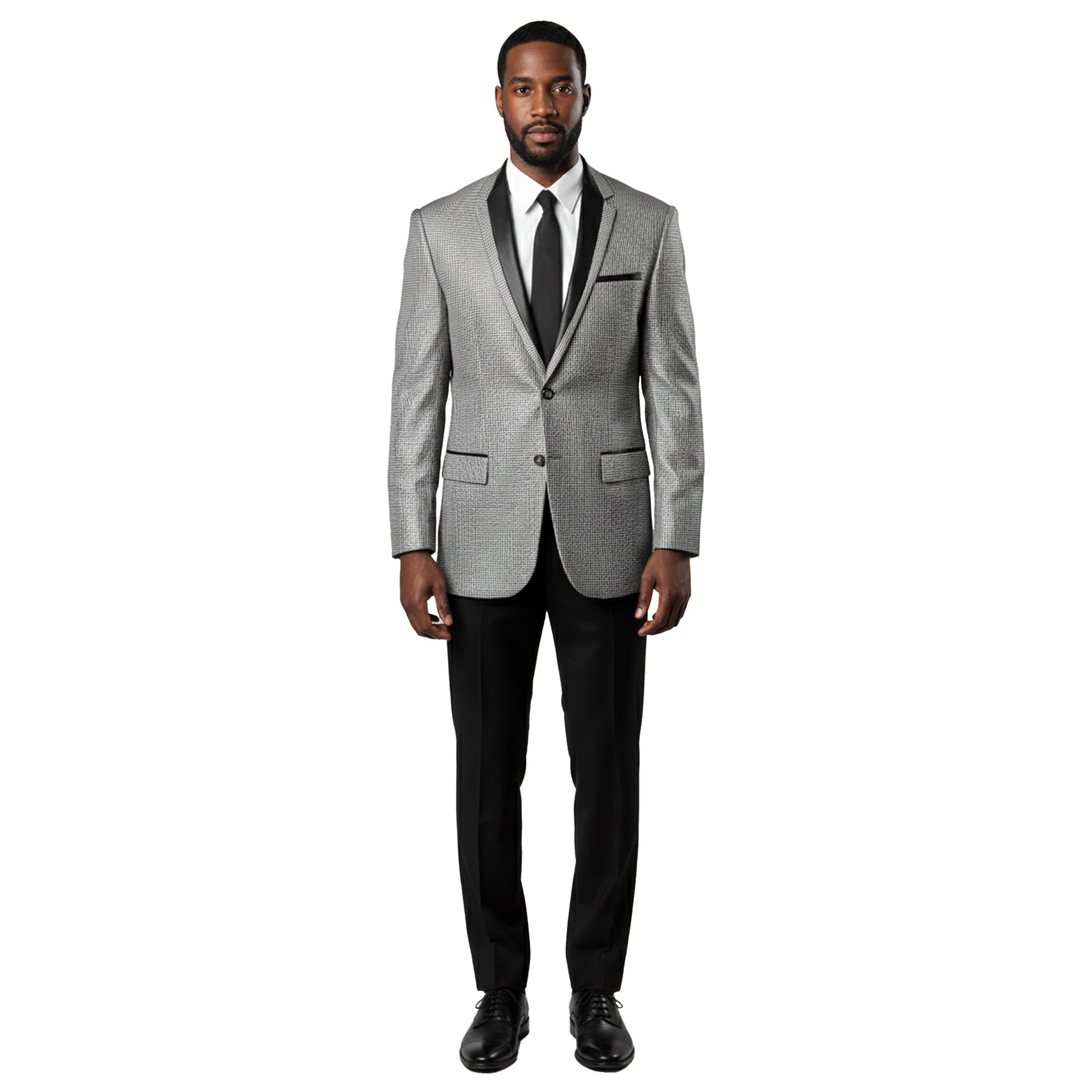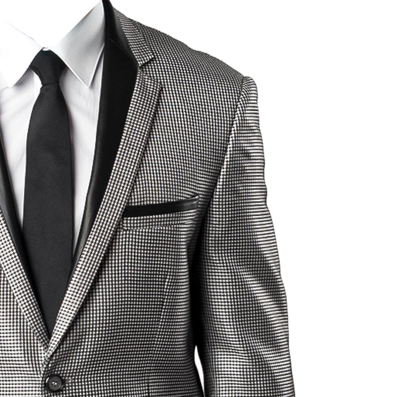 Tazzio Men’s Satin Trim Micro Houndstooth Blazer Only, Silver