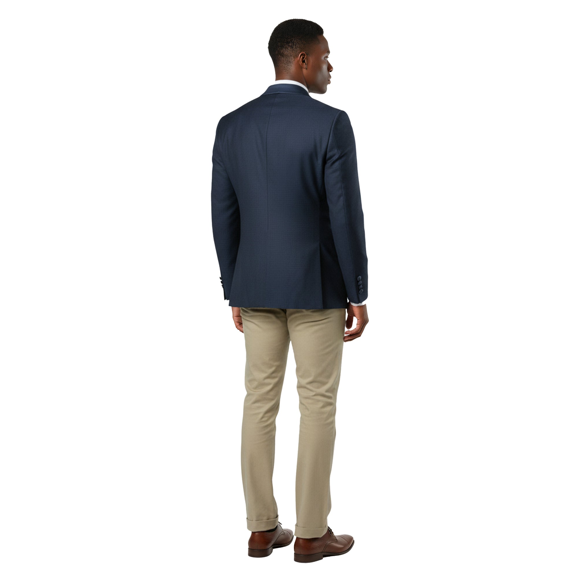 A tailored birdseye patterned jacket designed for versatile formal and semi formal styling.