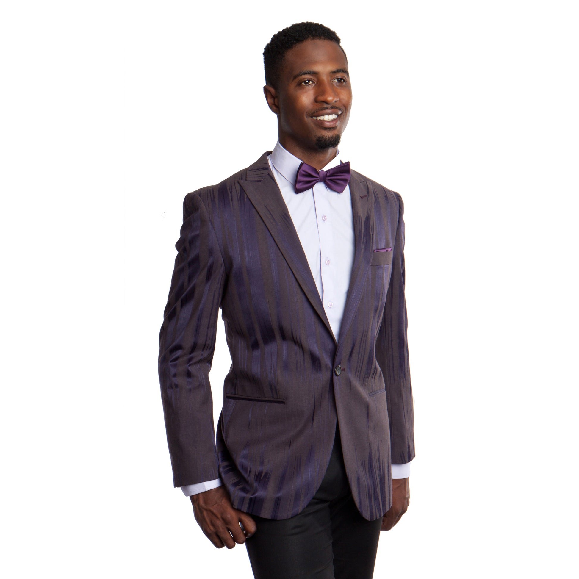 Elevate your evening and special occasion wear with this strikingly unique Midnight Purple Sport Coat. This jacket features a bold, textured design that blends classic stripes with a contemporary high-sheen finish, guaranteed to turn heads.
