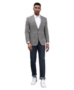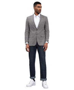 Refine your wardrobe with the Stacy Adams Dark Grey Windowpane Jacket, a sophisticated blend of modern tailoring and classic elegance. The textured fabric with a subtle windowpane plaid pattern adds depth and character, making it a versatile piece for both formal and semi-formal occasions. Designed with a hybrid fit, this jacket offers a tailored yet comfortable silhouette, while the notch lapel and two-button closure deliver timeless appeal. Practical details like side vents, underarm sweat guards, and ample pocket space ensure style meets functionality, making this jacket a standout choice for the discerning gentleman.