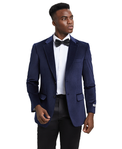 Stacy Adams Men's Hybrid-fit Notch Lapel Velvet Jacket, Navy
