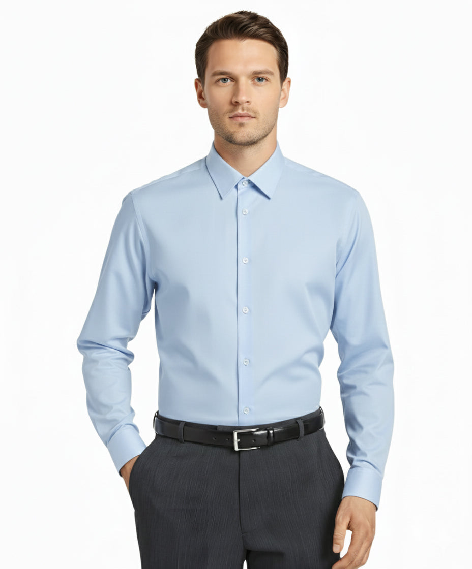 Elevate your professional and formal attire with this Essential Modern Fit Dress Shirt. Expertly designed to provide a crisp, clean, and contemporary silhouette, this shirt offers a streamlined look without sacrificing comfort or range of motion.