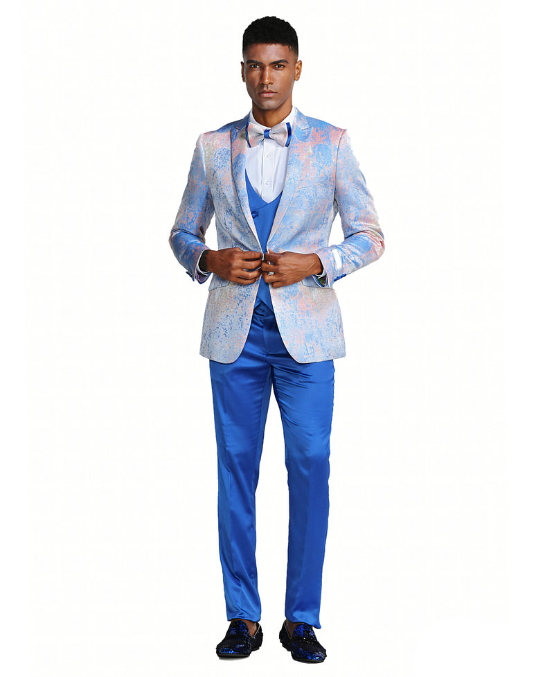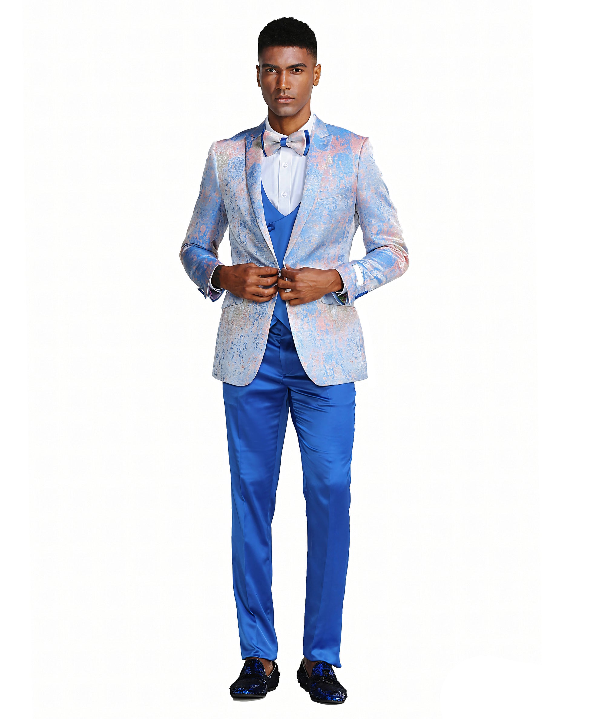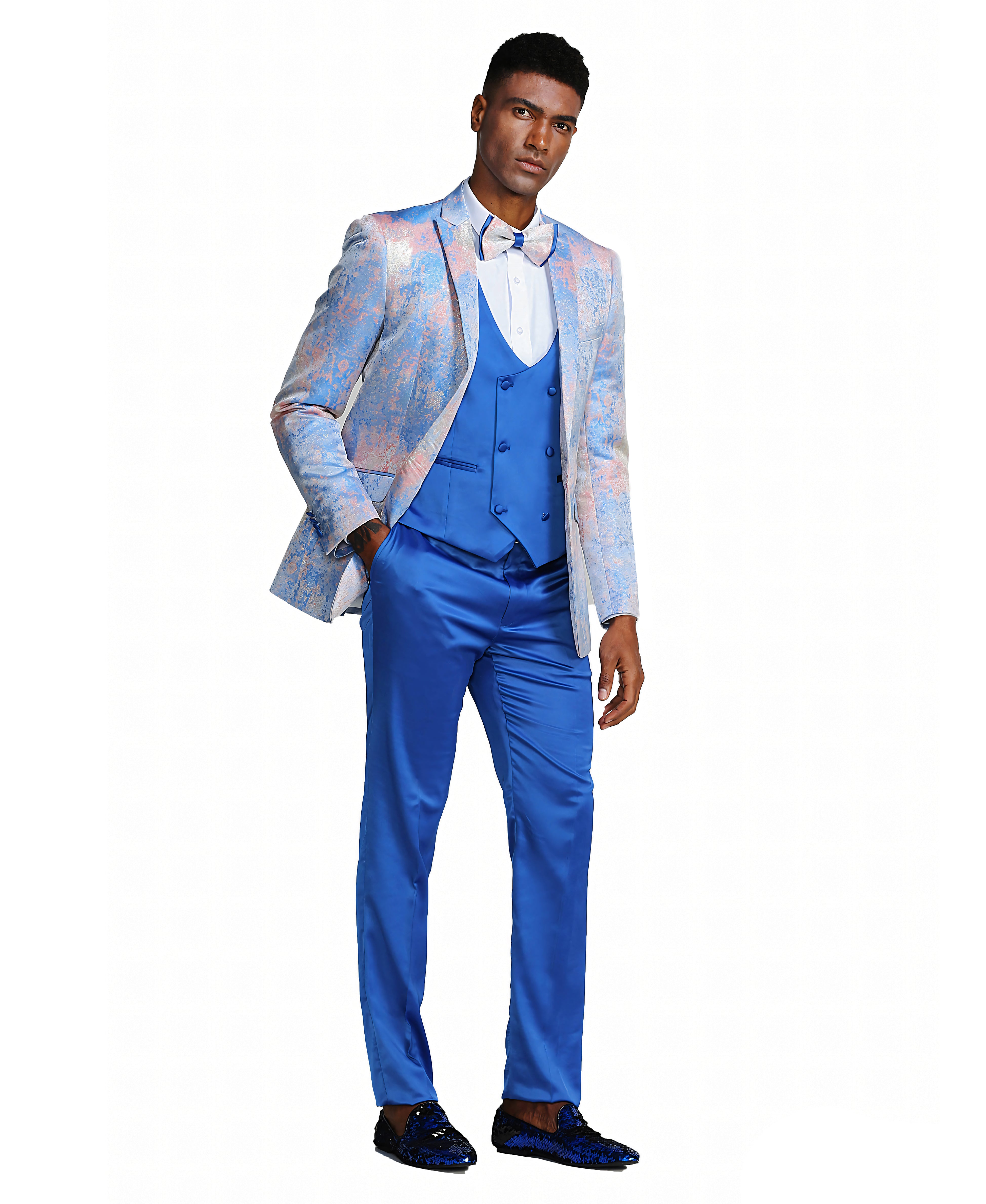 ¿Busca un traje que seguramente llamará la atención? ¡No busques más que nuestro traje rosa polvoriento con solapa de pico de 3 piezas! Este traje irradia confianza y sofisticación con su combinación única y llamativa de colores rosa y azul cielo y su elegante diseño de solapa en pico. Los pantalones ajustados completan el look, creando una silueta estilizada que es a la vez cómoda y elegante. Perfecto para cualquier ocasión formal, este traje seguramente llamará la atención y dejará una impresión duradera. ¡Eleva tu guardarropa y haz una declaración audaz con nuestro traje imprescindible de 3 piezas!