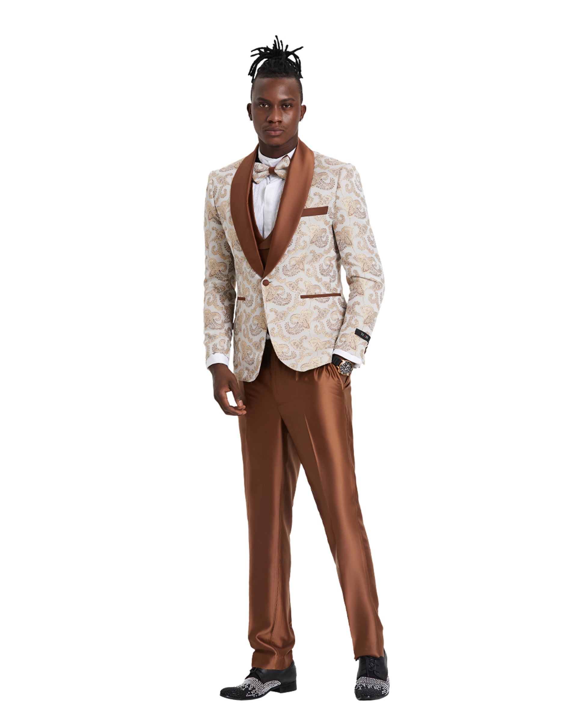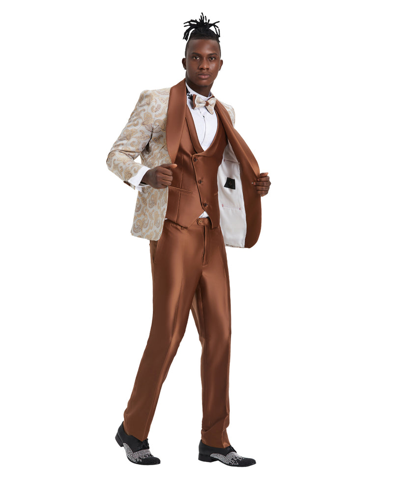 Traje Tazio Skinny Fit Paisley, cuello chal Óxido