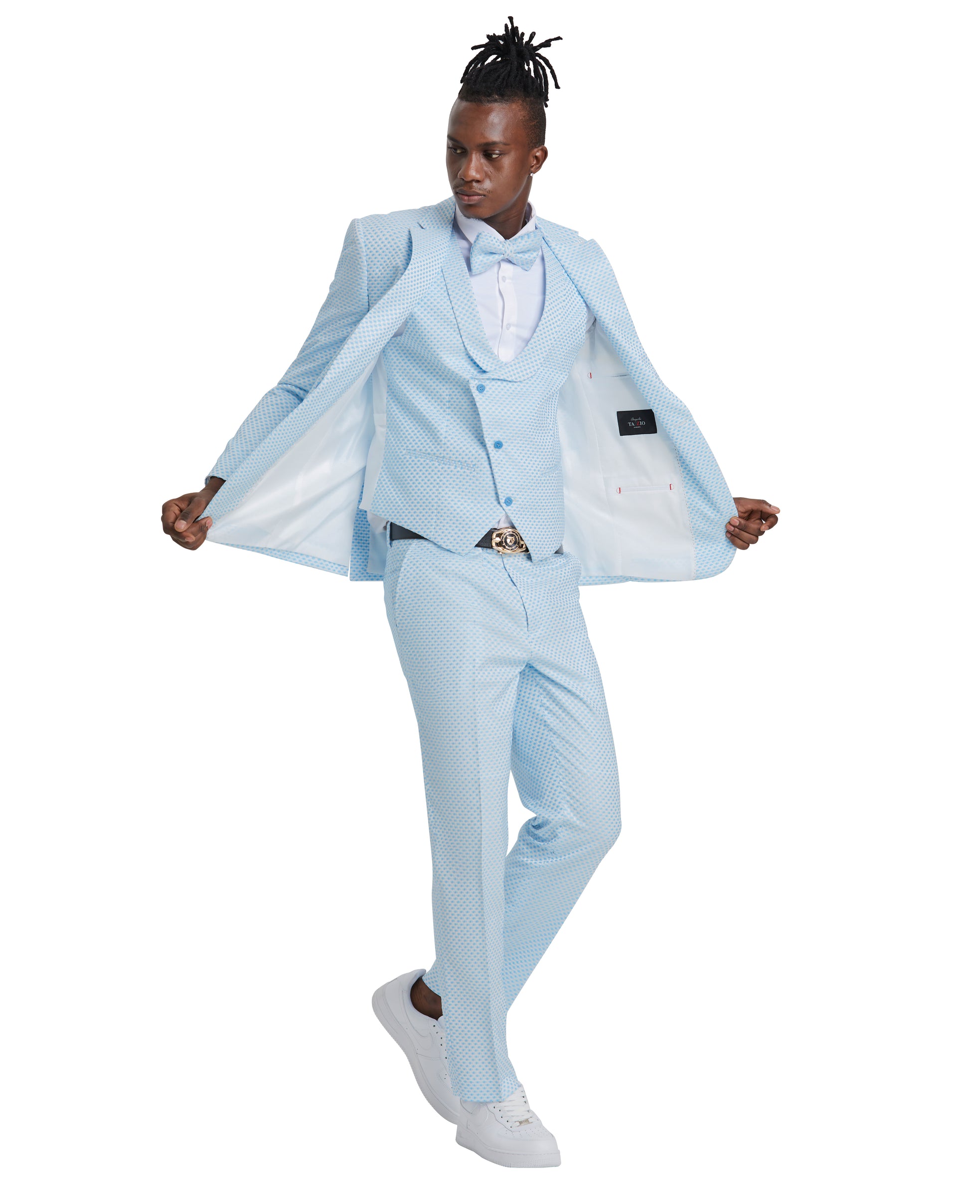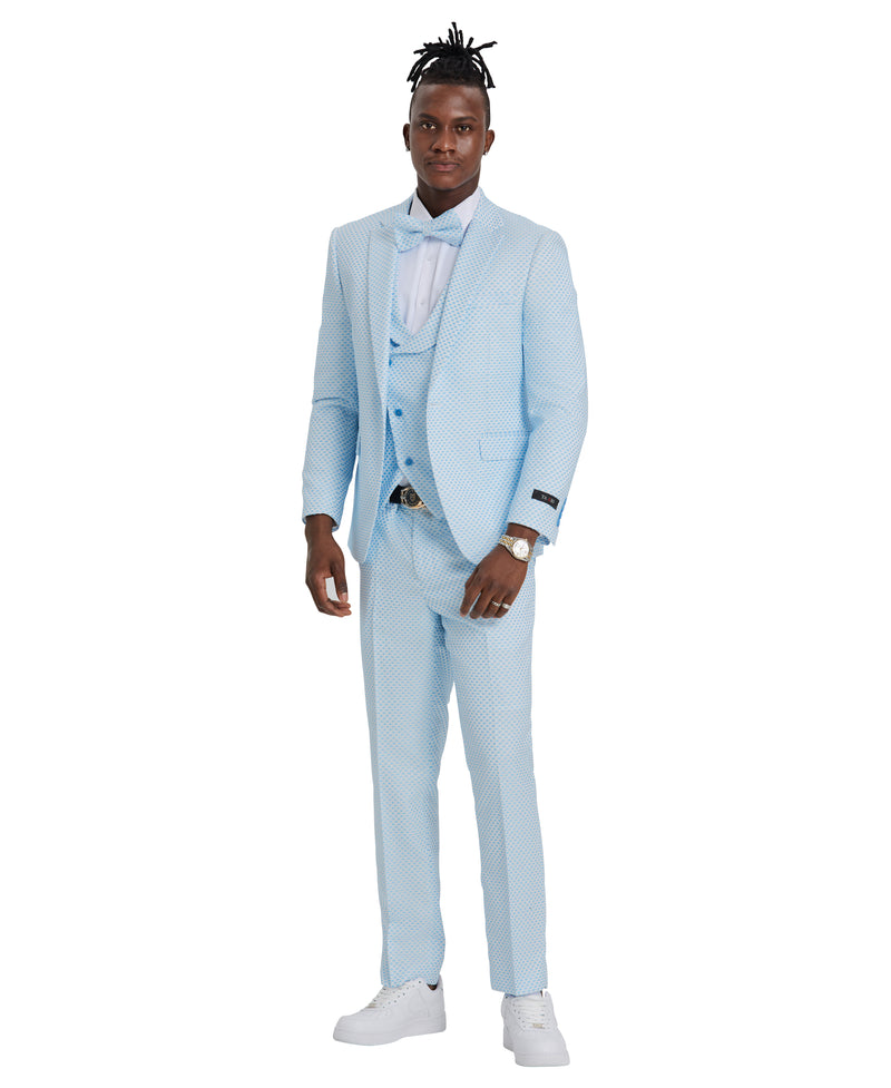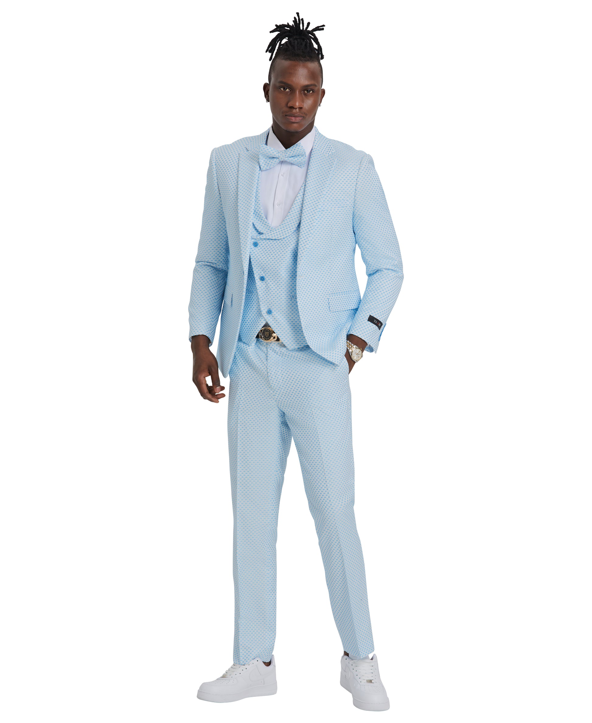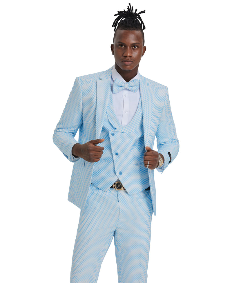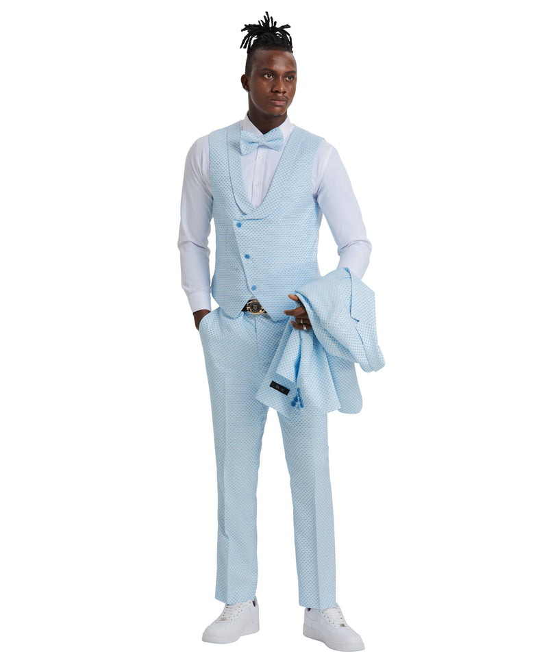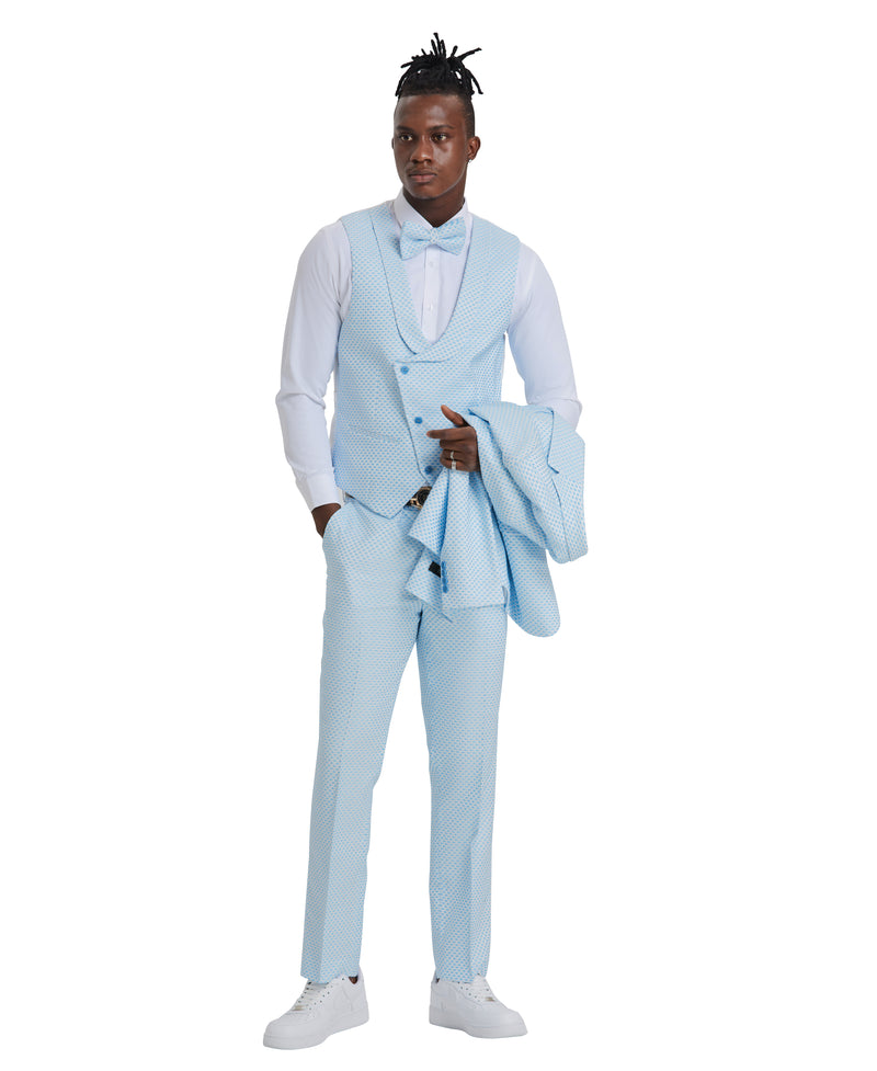 Tazio Chaleco ajustado en forma de U con chal y lunares para traje, azul cielo