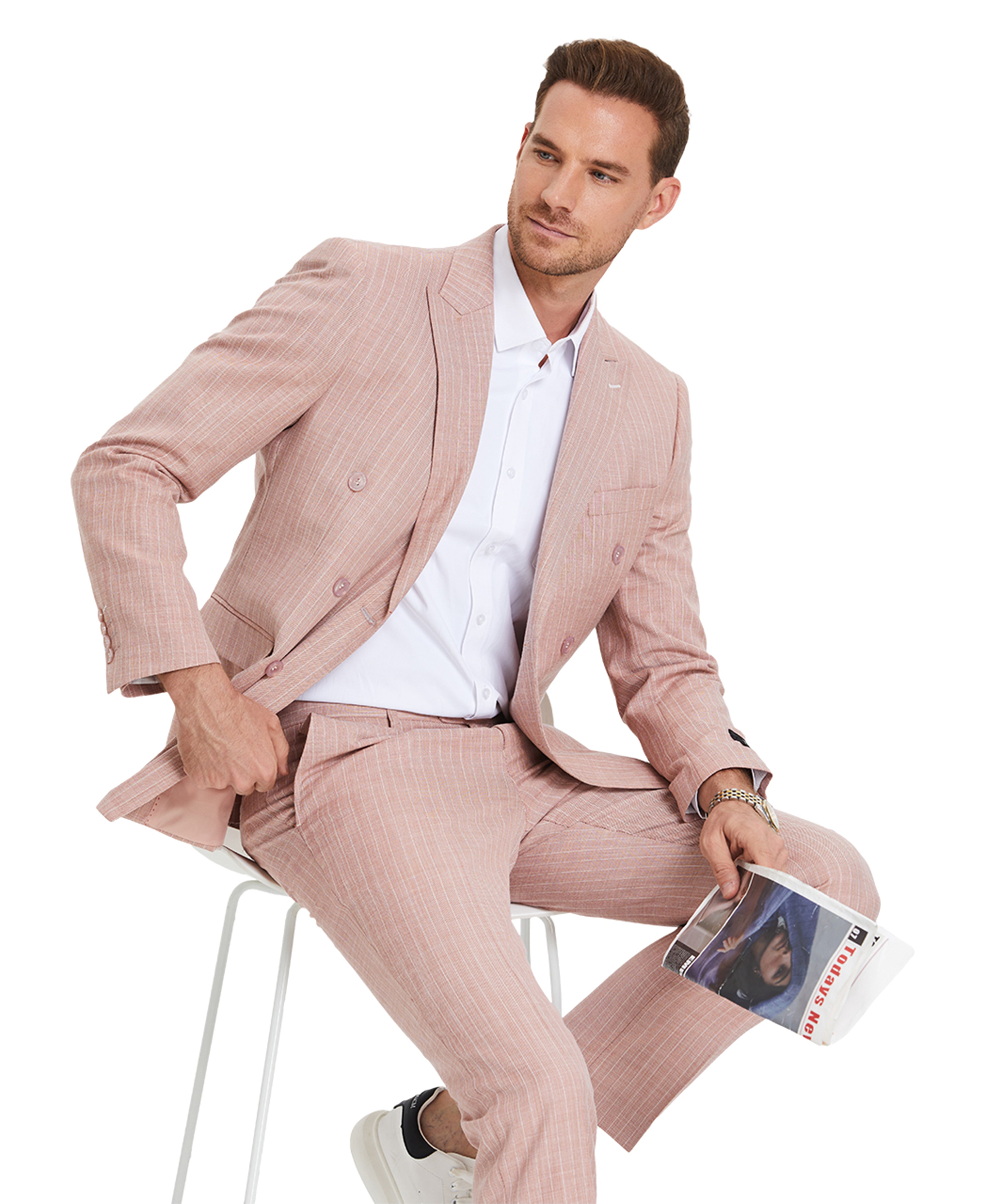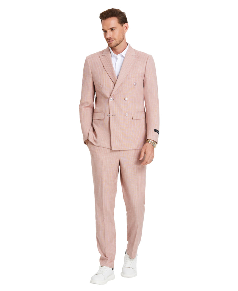 Traje cruzado de corte entallado a rayas Tazio, rosa