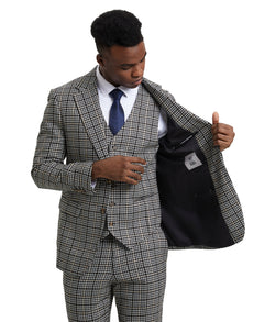 Traje sin mangas Stacy Adams Hybrid-Fit, cuadros negros