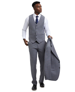 Traje sin mangas de corte híbrido Stacy Adams, gris a cuadros