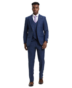 Presentamos el traje con chaleco cruzado híbrido Stacy Adams en azul ventana: elegancia y estilo contemporáneo. Este conjunto elaborado a mano de 3 piezas presenta un cierre de 1 botón, solapa de pico y patrón de ventana. El ajuste híbrido fusiona estilo y movimiento a medida, y los pantalones con parte delantera plana brindan una apariencia moderna. El chaleco cruzado añade profundidad y dimensión. Eleva tu guardarropa con Stacy Adams: deja una impresión duradera con sofisticación y comodidad atemporales.