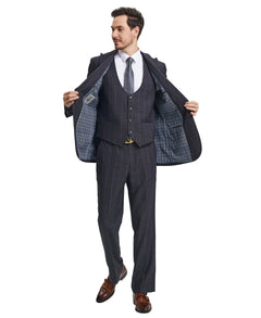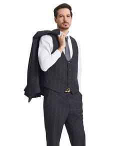 Traje con chaleco de corte híbrido Stacy Adams con chaleco en forma de U, ventana color carbón