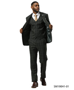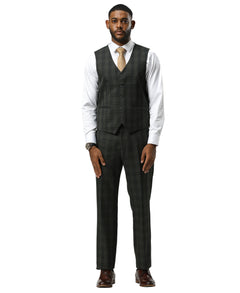 The Stacy Adams Glen Plaid Notch Lapel Vested Suit is a timeless choice for any formal occasion, combining classic style with modern comfort. This 3-piece set includes a sleek jacket, matching vest, and tailored pants, all featuring a sophisticated glen plaid pattern. The jacket is designed with a notch lapel, two-button front closure, and side vents for easy movement, plus practical details like two flap pockets, three interior pockets, and underarm sweat guards for added comfort. The single-breasted vest features a v-neck, five-button closure, and two handy pockets, completing the polished look. The flat-front pants include an expandable waistband for all-day comfort, along with angled front pockets and buttoned back pockets for convenience.