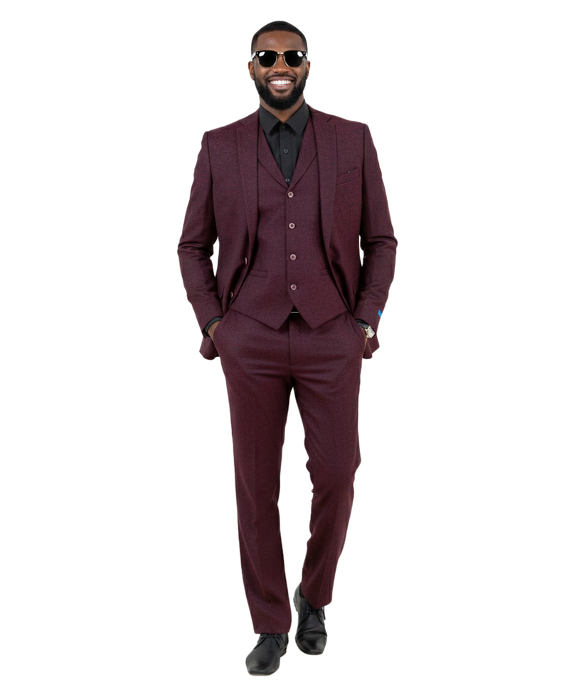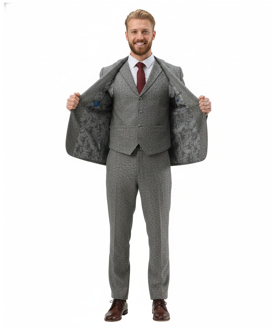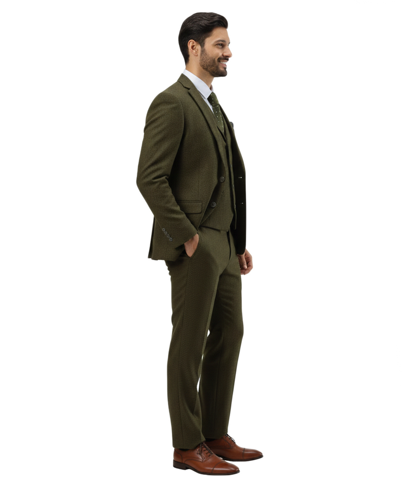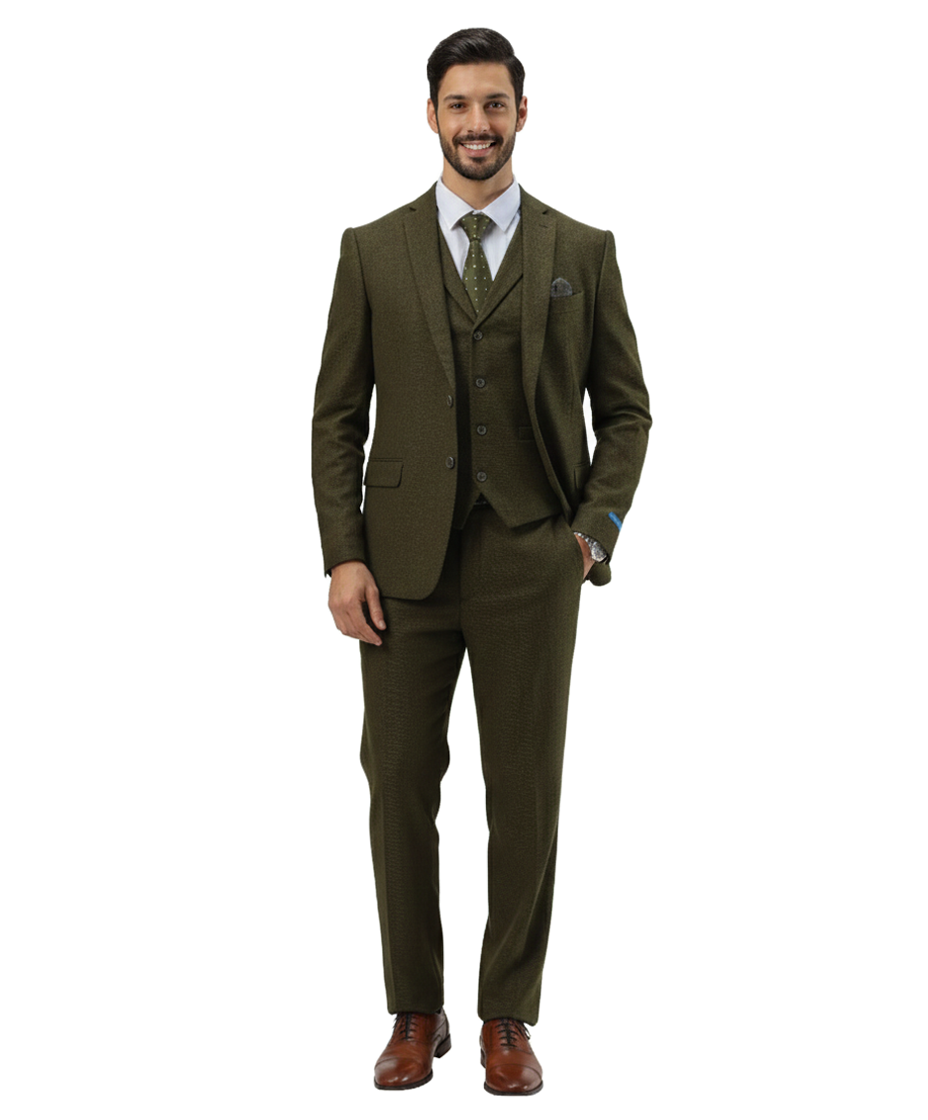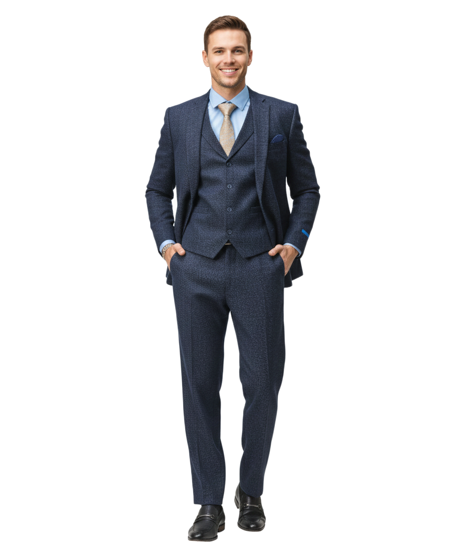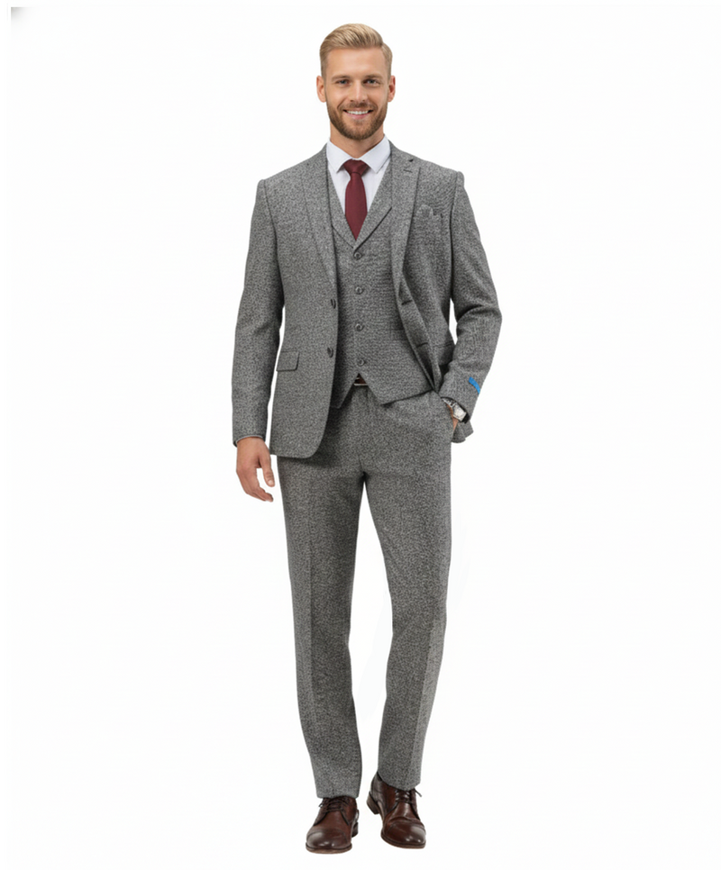 Men’s Premium Tweed 3-Piece Slim Fit Suit - Textured Tweed-Style Formal Set for Weddings, Business, and Special Events