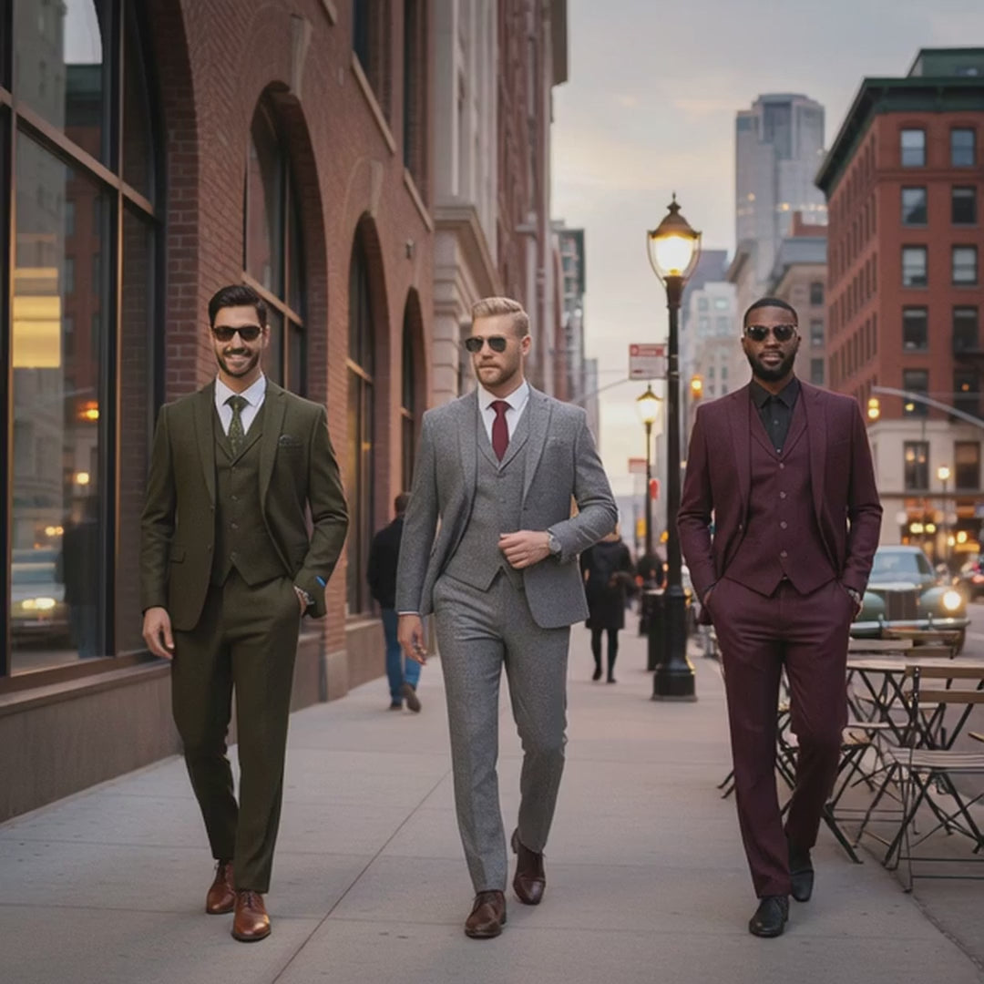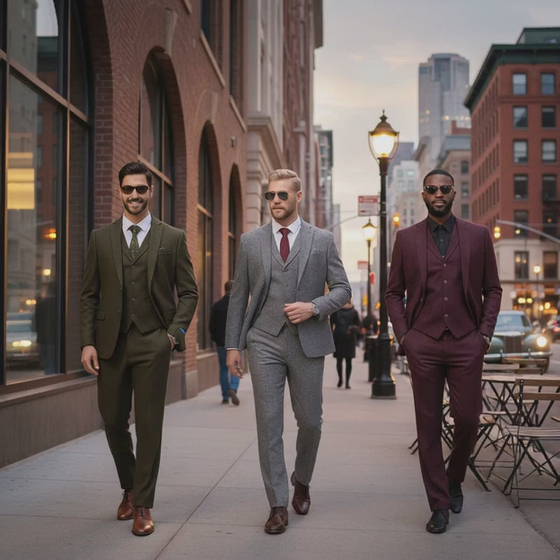 👔 Refined 3-Piece Set: Includes a notched-lapel jacket, a slim-cut vest, and flat-front trousers for a complete, coordinated look