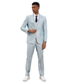 Traje de 3 piezas Stacy Adams Hybrid Fit, color turquesa claro sólido