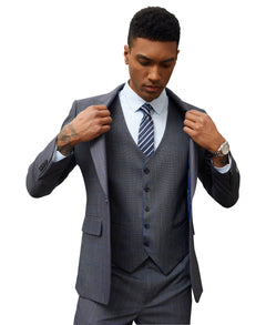 Traje híbrido de 3 piezas Stacy Adams, cuadros verde azulado oscuro