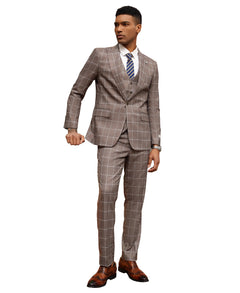 Logre un estilo refinado con el traje marrón Windowpane Hybrid-Fit de Stacy Adams. Combinando modernidad y elegancia, este traje cuenta con un cierre de 1 botón, solapa de pico y pantalones planos para una apariencia elegante y atemporal. El exclusivo patrón Brown Windowpane añade un toque refinado, mientras que el ajuste híbrido garantiza una comodidad excelente y una silueta moderna. Mejora tu estilo con este moderno traje con chaleco para causar una magnífica impresión, sin importar la ocasión. Adopte la confianza clásica con Stacy Adams.