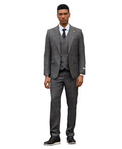 Logre un estilo refinado con el traje híbrido gris oscuro Windowpane de Stacy Adams. Combinando modernidad y elegancia, este traje cuenta con un cierre de 1 botón, solapa de pico y pantalones planos para una apariencia elegante y atemporal. El exclusivo patrón Dark Grey Windowpane añade un toque refinado, mientras que el ajuste híbrido garantiza una comodidad excelente y una silueta moderna. Mejora tu estilo con este moderno traje con chaleco para causar una magnífica impresión, sin importar la ocasión. Adopte la confianza clásica con Stacy Adams.