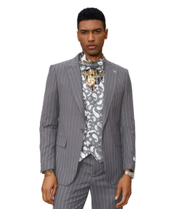 Haga alarde de su impecable sentido de la moda con este traje sin mangas de 3 piezas Stacy Adams Hybrid-Fit en gris medio a rayas. Con una clásica solapa de pico, cierre de 1 botón y chaleco de 5 botones, realza tu look con una elegancia atemporal que llama la atención. Experimente la combinación perfecta de comodidad y precisión a medida con nuestro ajuste híbrido, mientras que los pantalones con frente plano brindan una silueta moderna. Adéntrate en un estilo refinado y prestigio con el traje sin mangas de 3 piezas de corte híbrido a rayas gris medio y eleva tu guardarropa.