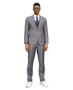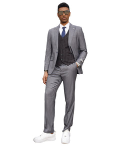 Traje con chaleco de ajuste híbrido Stacy Adams, Rayas gris medio