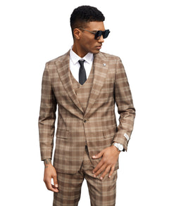 Eleva tu estilo con el traje de 3 piezas Stacy Adams en color marrón ventana. Es una obra maestra moderna que combina a la perfección la elegancia clásica con un estilo contemporáneo. Con cierre de un solo botón para darle un toque de estilo moderno, lujosa solapa en pico y un cautivador patrón de ventana en la tela. El ajuste híbrido de este traje ofrece comodidad y estilo personalizado, lo que lo hace perfecto para el trabajo o para ocasiones especiales. Los pantalones con parte delantera plana garantizan una silueta elegante, mientras que el chaleco de 5 botones añade calidez y estilo adicionales. Haga una declaración en bodas, eventos formales o reuniones importantes con Stacy Adams, donde el estilo atemporal se combina con el confort moderno.