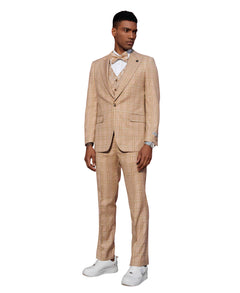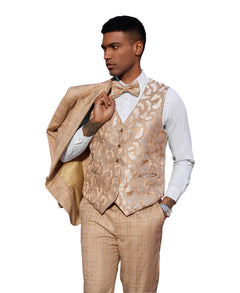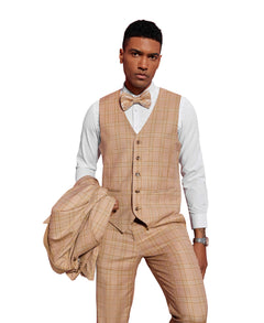 Traje sin mangas Stacy Adams Hybrid-Fit, Glen Check, color canela claro