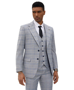 Traje sin mangas Stacy Adams Hybrid-Fit, cuadros Glen azul bebé