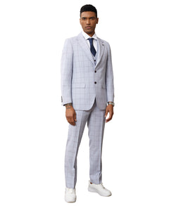 Logre la personificación del estilo con el sofisticado traje de 3 piezas Stacy Adams en azul ventana. Combinando un diseño clásico con toques contemporáneos, este traje incluye un frente de un solo botón, una sofisticada solapa de pico y un excelente patrón de ventana. Su Hybrid Fit fusiona a la perfección el estilo entallado con la comodidad sin esfuerzo, y los pantalones de frente plano y el chaleco de cinco botones brindan un contorno elegante y una calidez agradable. Deje que Stacy Adams perfeccione su guardarropa, donde la elegancia atemporal se une a la sencillez moderna.