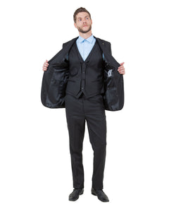 El traje de 3 piezas Stacy Adams Hybrid-Fit en color negro medianoche texturizado es una combinación de estilo sofisticado y comodidad contemporánea. El cierre de un solo botón, la solapa en pico y el versátil color Textured Midnight Black le dan un aspecto muy atractivo para cualquier entorno. Los elegantes pantalones planos y el chaleco de cinco botones lo hacen perfecto para cualquier evento elegante, desde bodas hasta cenas, lo que garantiza una declaración atemporal.