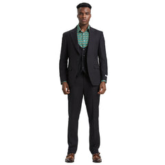 Stacy Adams Men's Hybrid-Fit 3pc Black Suit Set, Jacket Vest and Pants