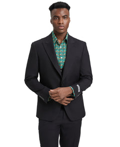Experience timeless sophistication with the Stacy Adams Hybrid-Fit 3pc Suit Set in classic black, meticulously crafted for the modern gentleman. The solid black jacket boasts a two-button front closure, peak lapel, and underarm sweat guards, ensuring both style and comfort. Complementing the ensemble, the black U-shaped vest features a four-button closure for added refinement. The flat-front black pants, complete with an expandable waistband and functional pockets, offer unparalleled versatility. Available in slim-fit sizes 36-44 and modern-fit sizes 46-62, this black suit set caters to diverse preferences, promising a tailored look for every occasion. Unleash your confidence and sophistication with the Stacy Adams Hybrid-Fit 3pc Suit Set in black.