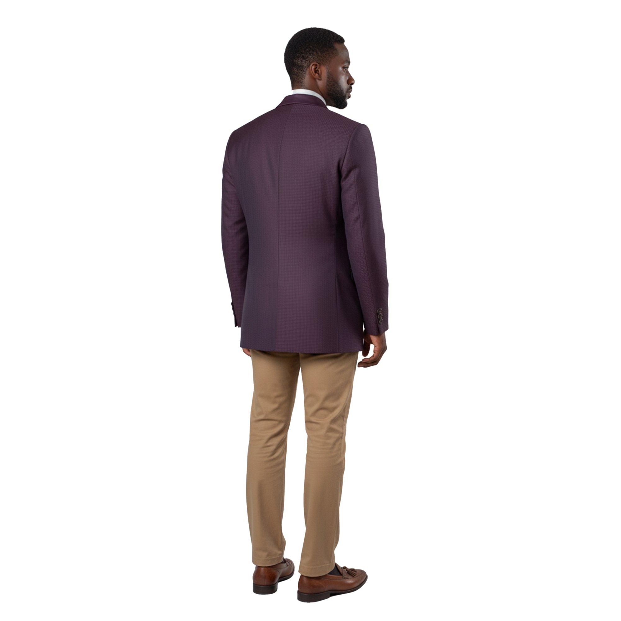 A tailored birdseye patterned jacket designed for versatile formal and semi formal styling.