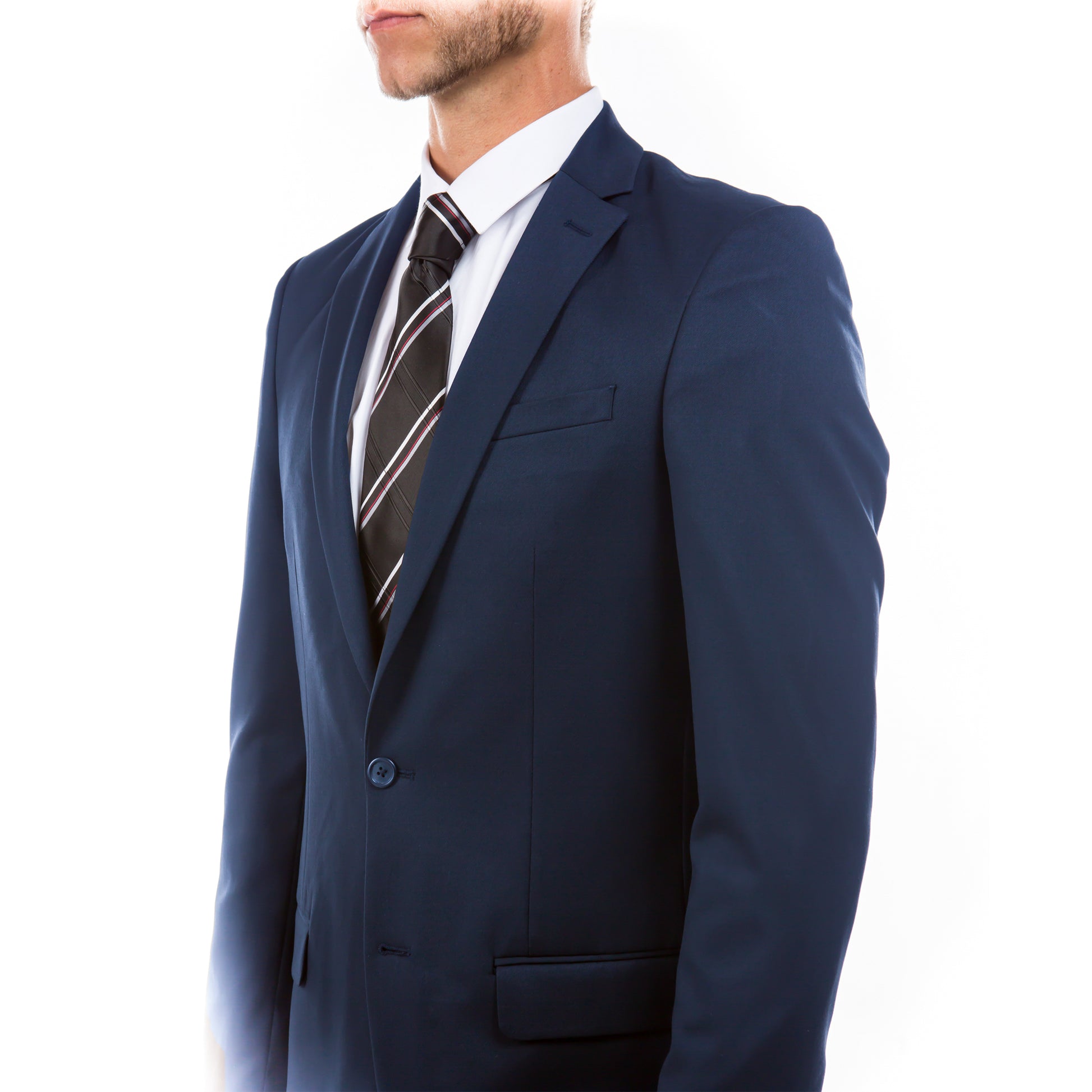 - Jacket: Classic two-button front closure, refined notch lapel, dual side vents, and premium interior detailing including French facing, three interior pockets, and underarm sweat guards.