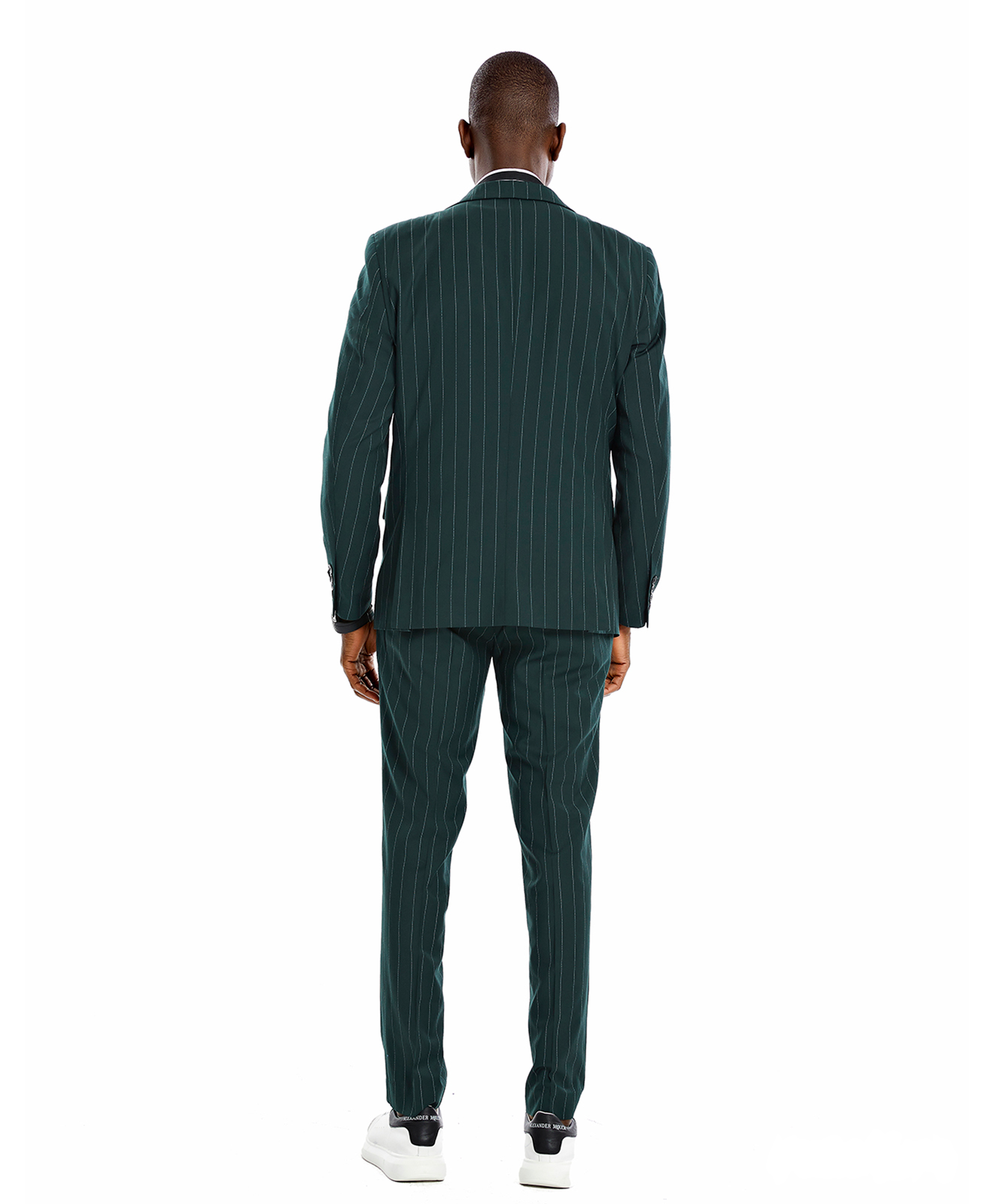 Tazio Traje 3 Piezas Verde Cazador con Rayas Blancas Solapa de Pico M369SK-03