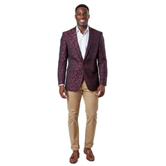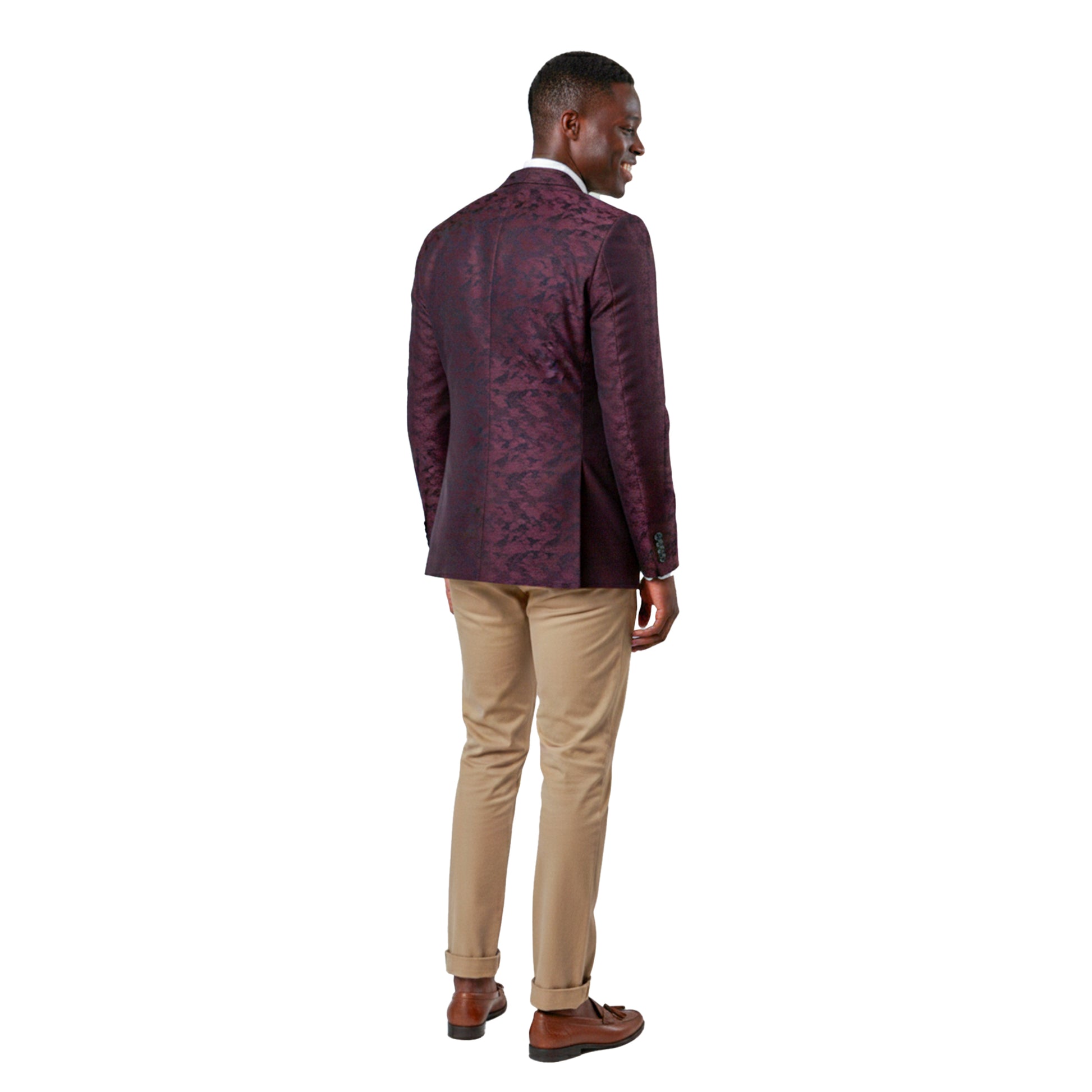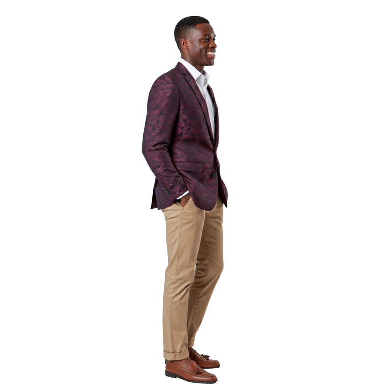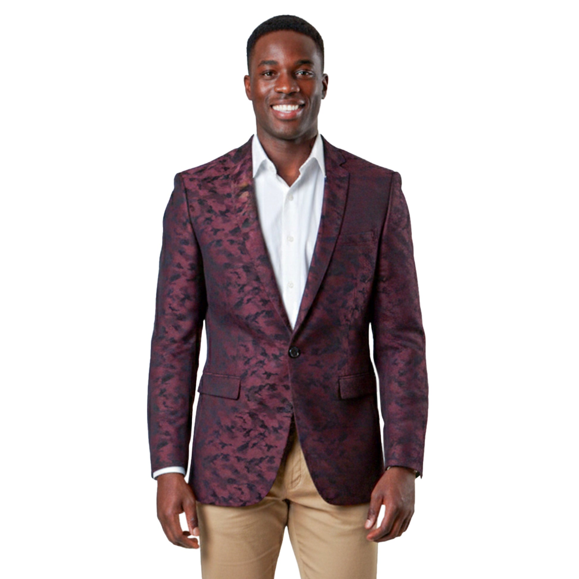 Tazzio Camouflage Mens Slim Fit Blazer Jacket, Burgundy