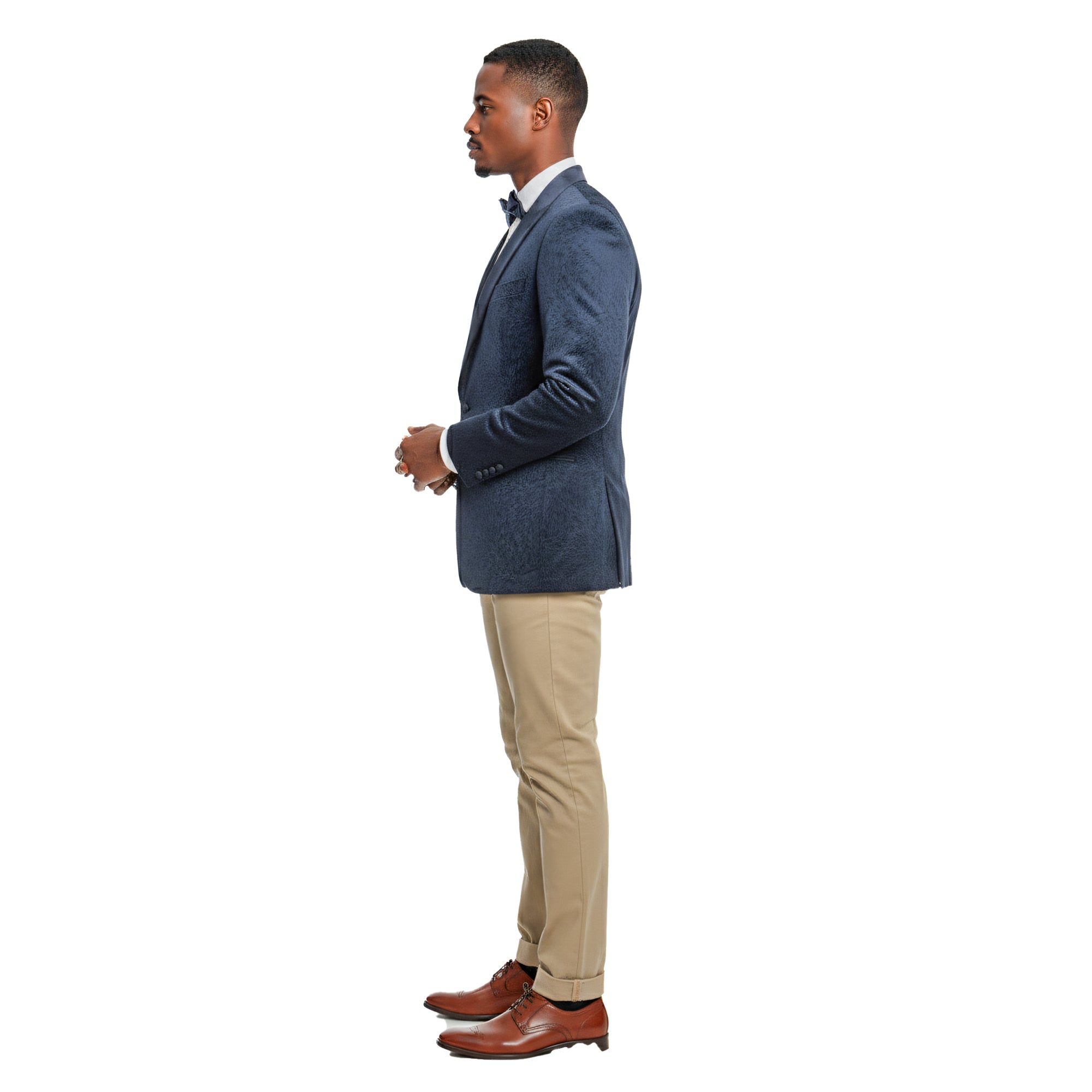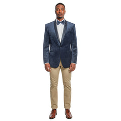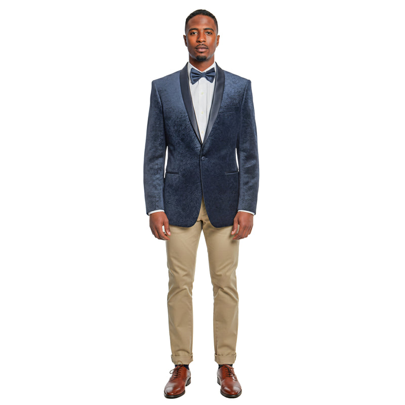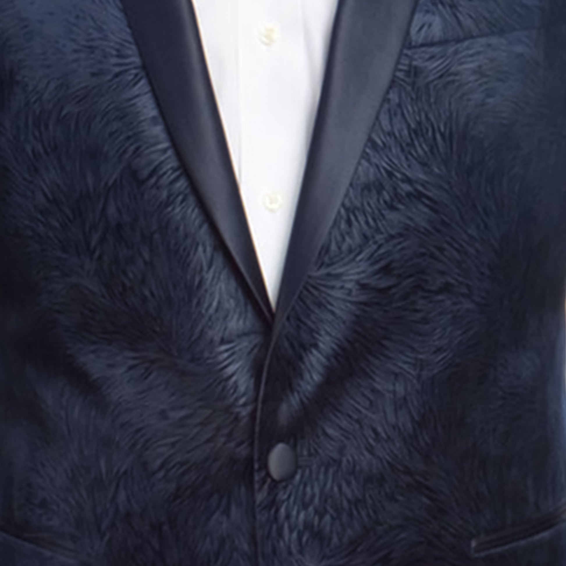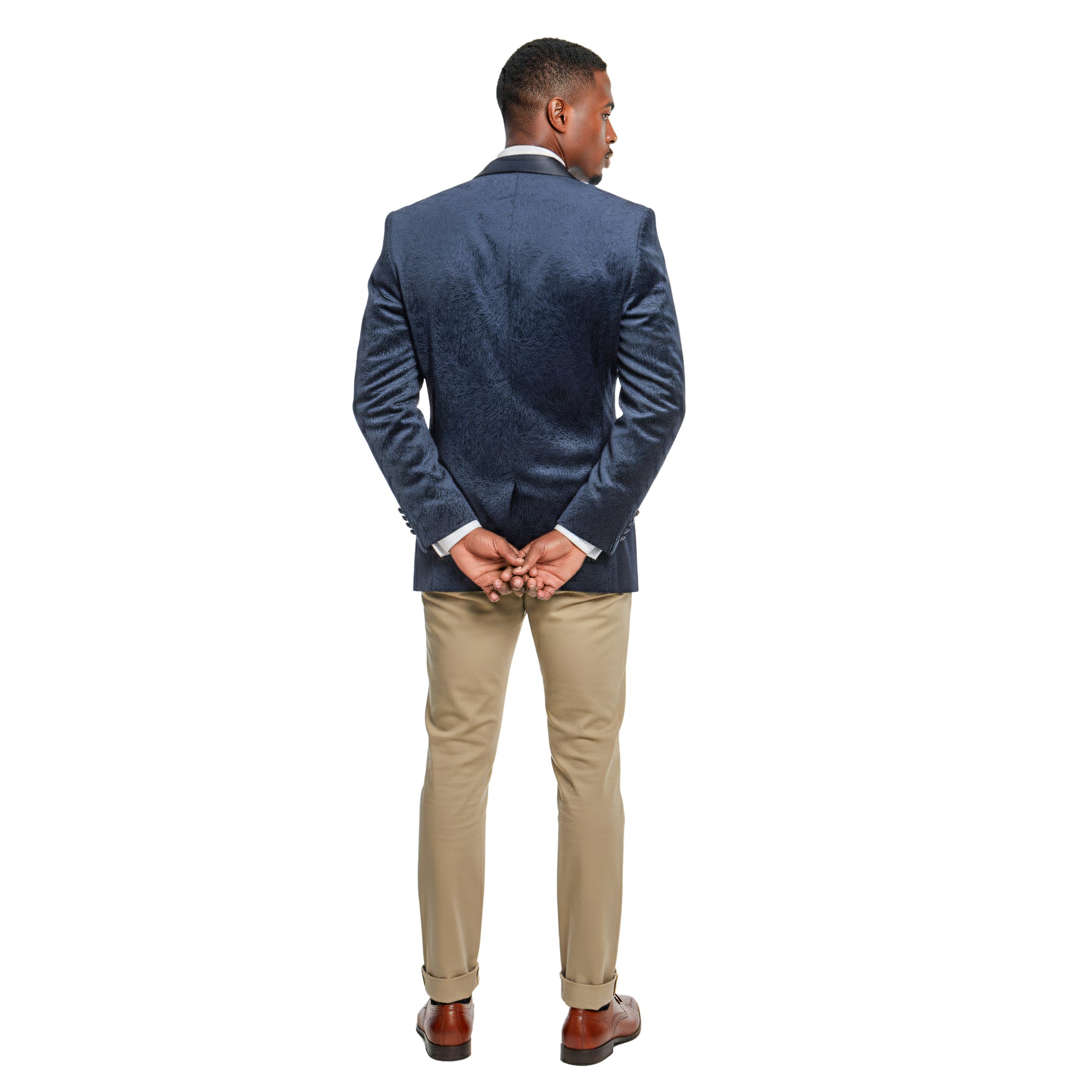 Empire™ Fuzzy Textured Velvet Dinner Jacket Modern-Fit, Satin Shawl Lapel, Navy