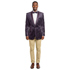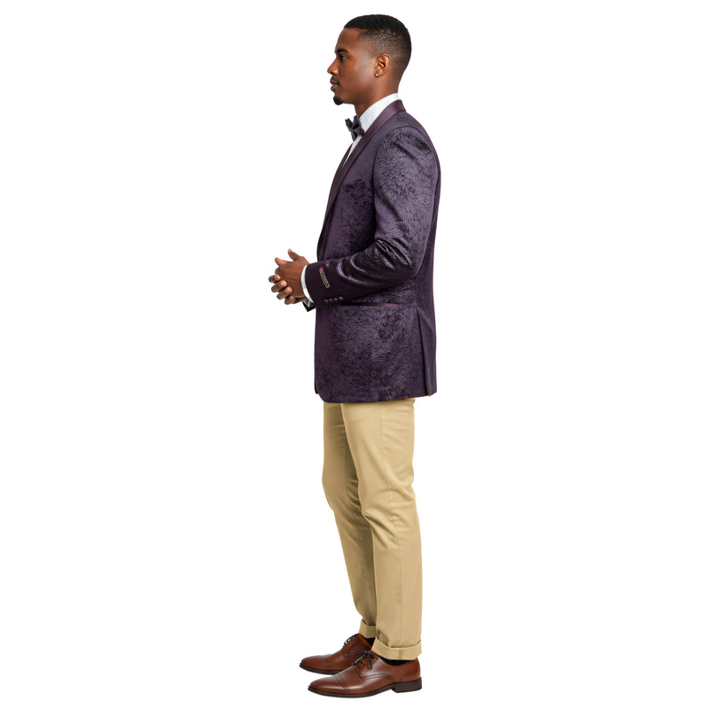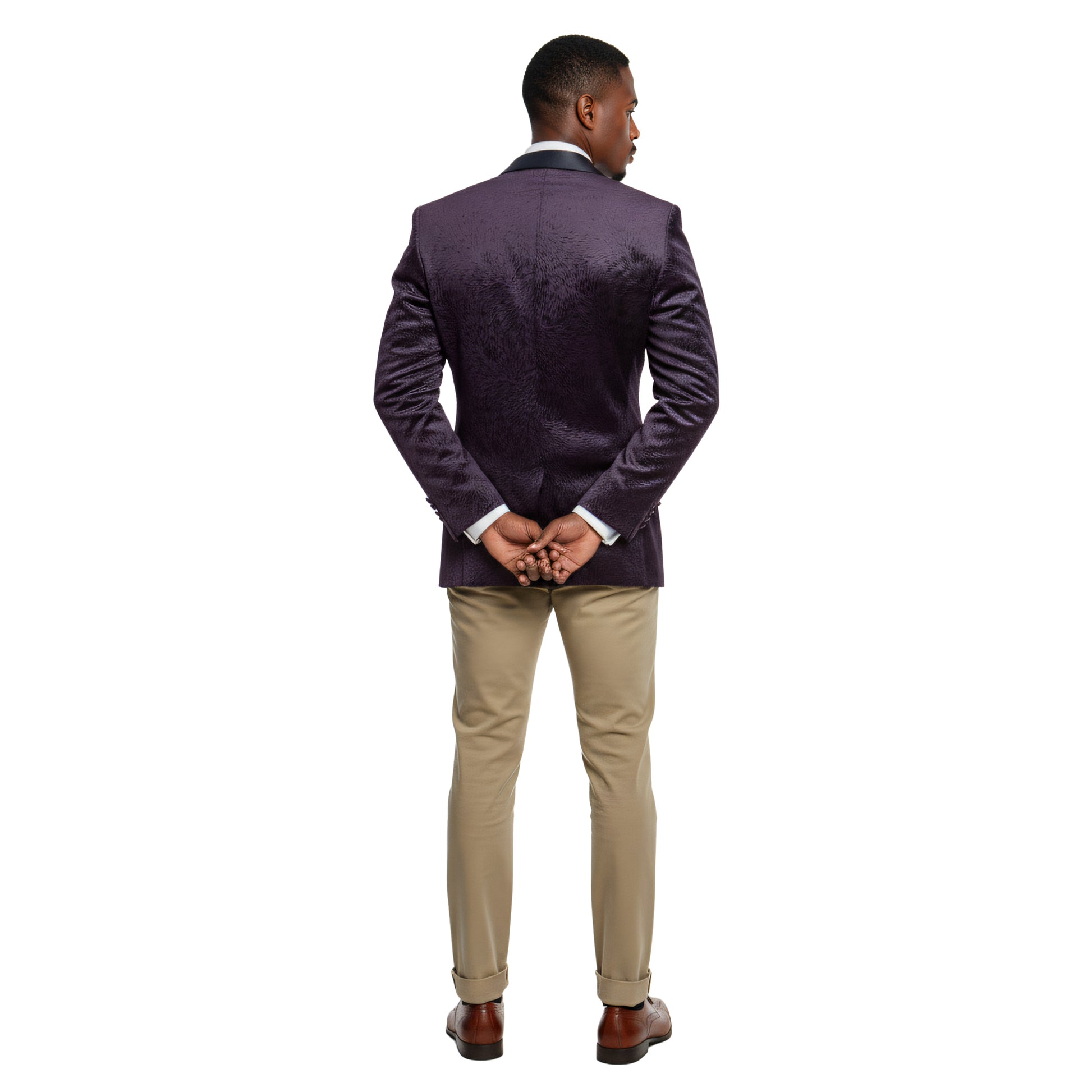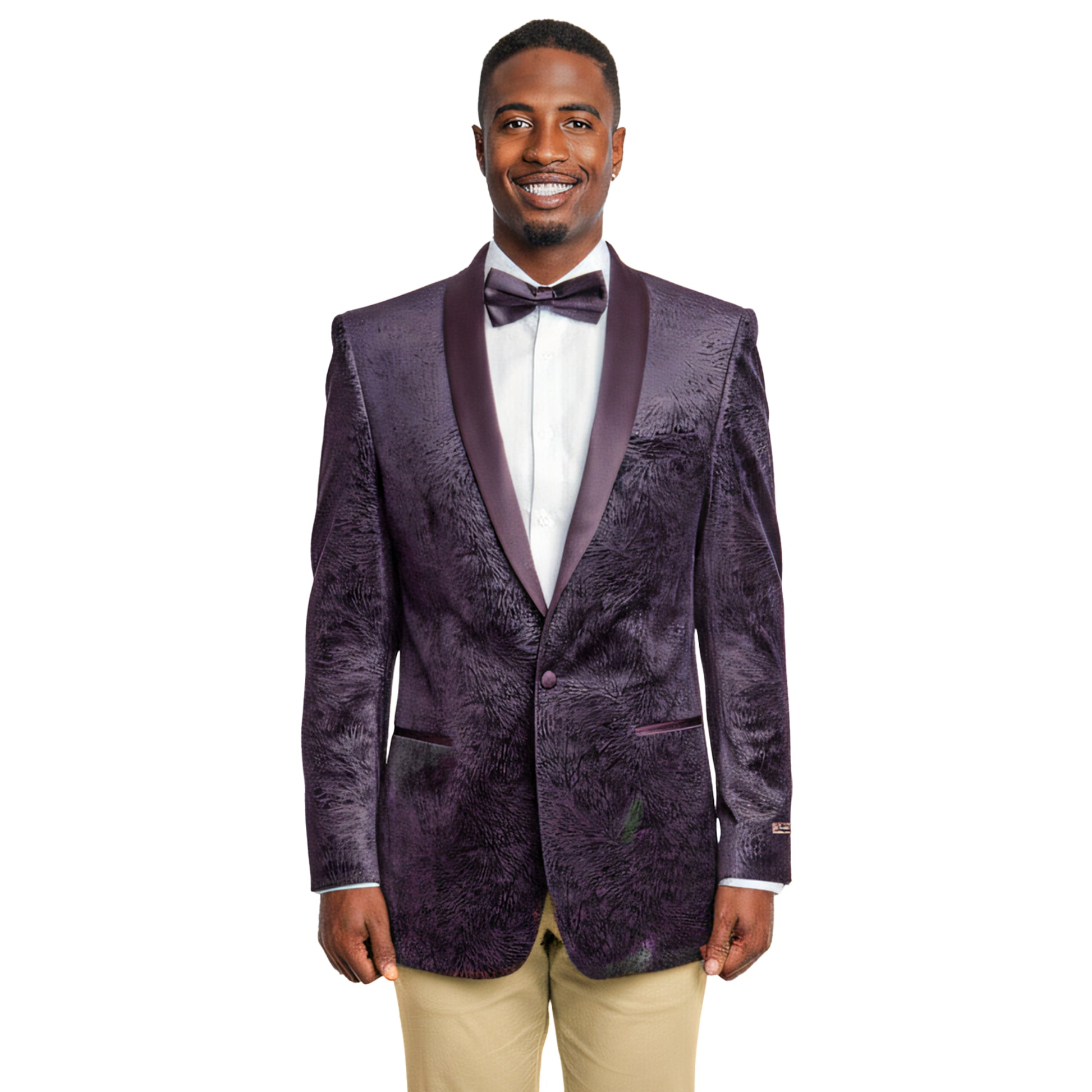 Empire™ Fuzzy Textured Velvet Dinner Jacket Modern-Fit, Satin Shawl Lapel, Plum