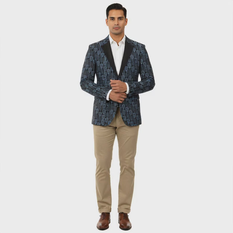 Empire™ Textured Patterned Birdseye Notch Lapel Modern Fit Blazer, Blue