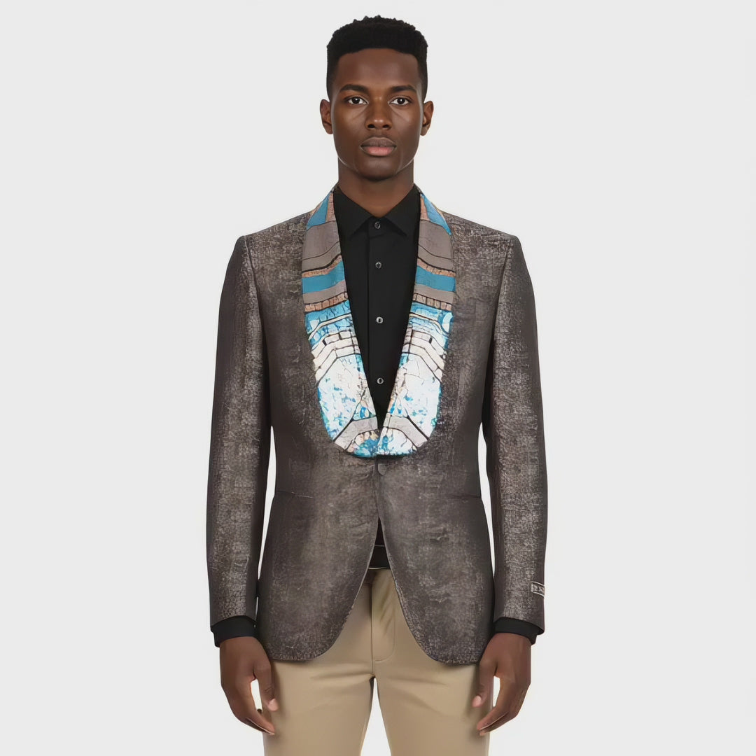 Empire™ Men's Premium Pharaoh Slim Shawl Lapel Blazer, Nemes Brown & Gold