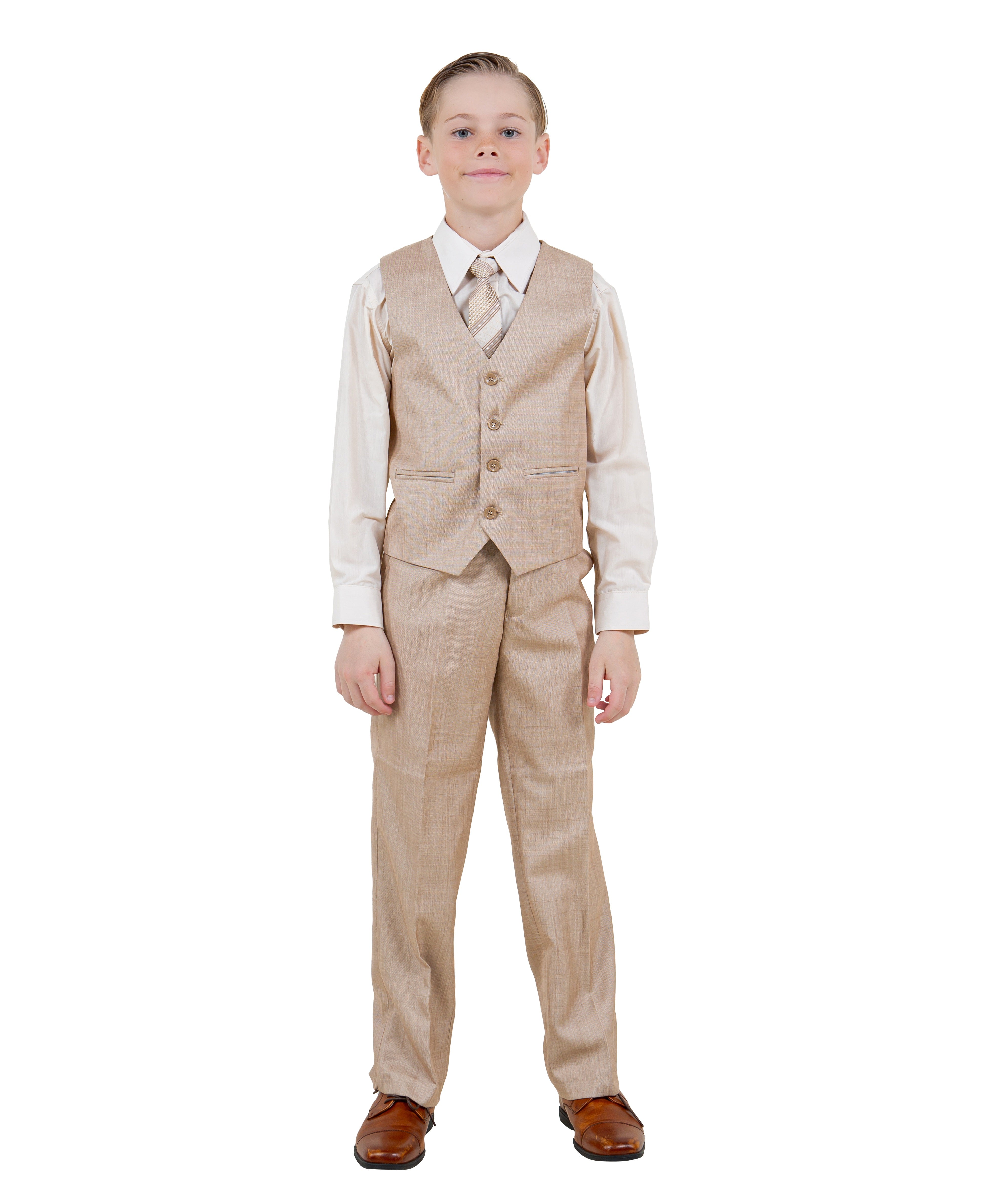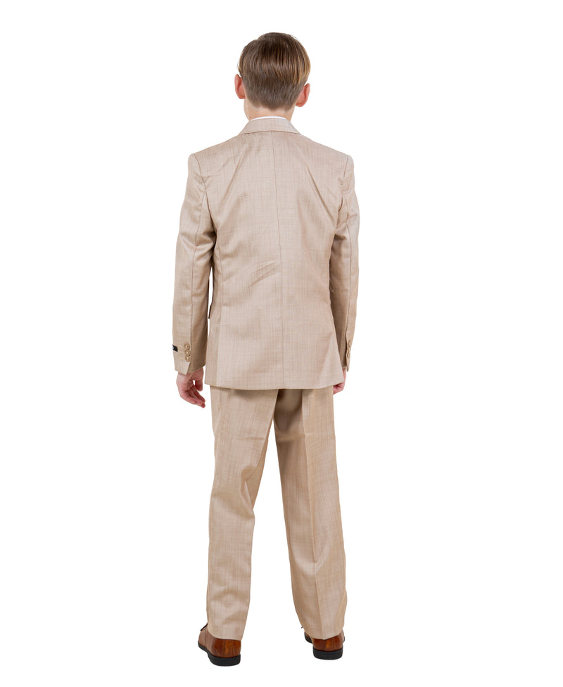 Boys Sharkskin Dress Suit – 2-Piece Formal Outfit with Two-Button Jacket & Adjustable Waist Pants