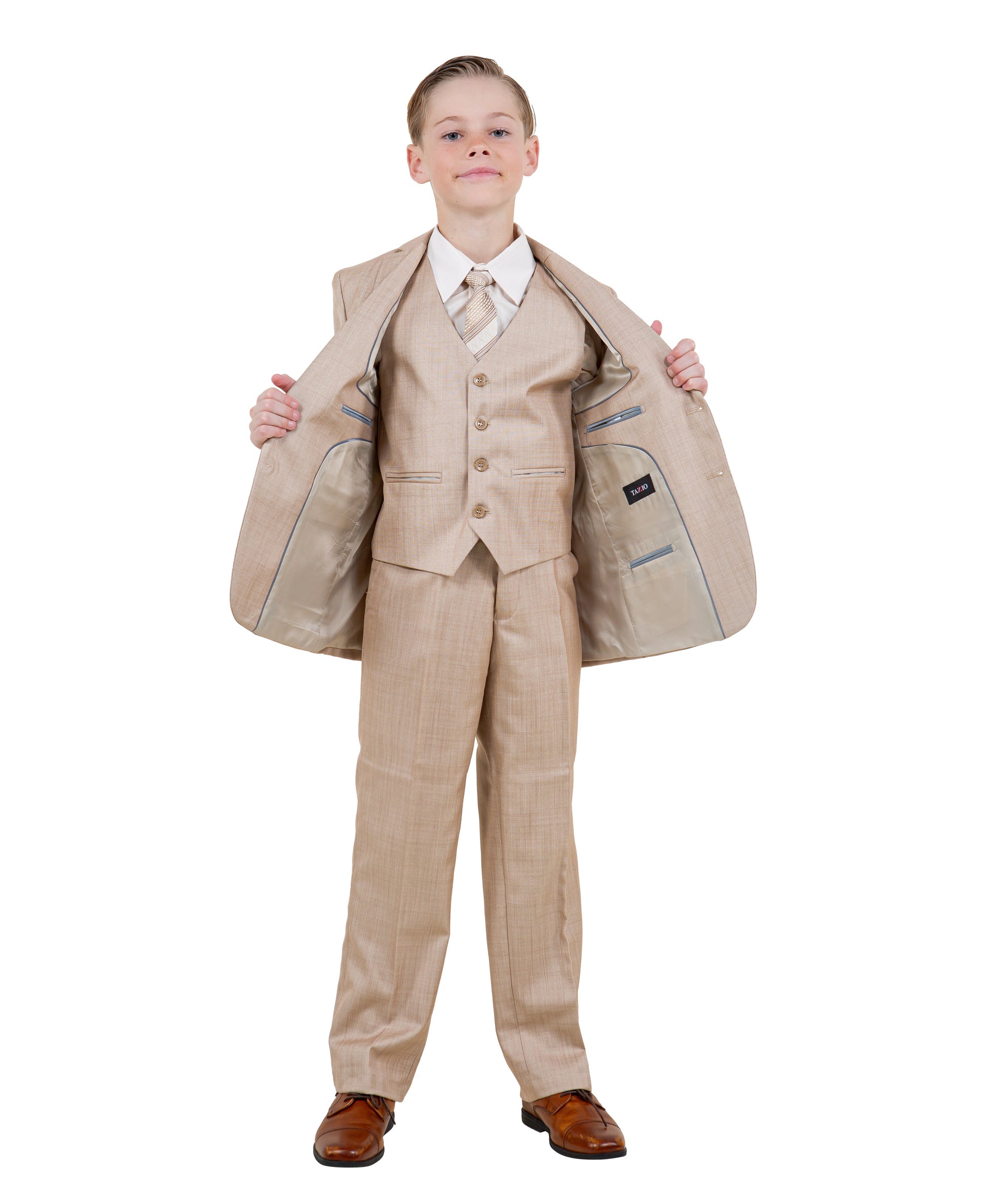This Tazzio classic combines comfort, class, and childhood charm. From the polished jacket to the adjustable-fit pants, every detail is made to help him look his best—and feel his best, too.
