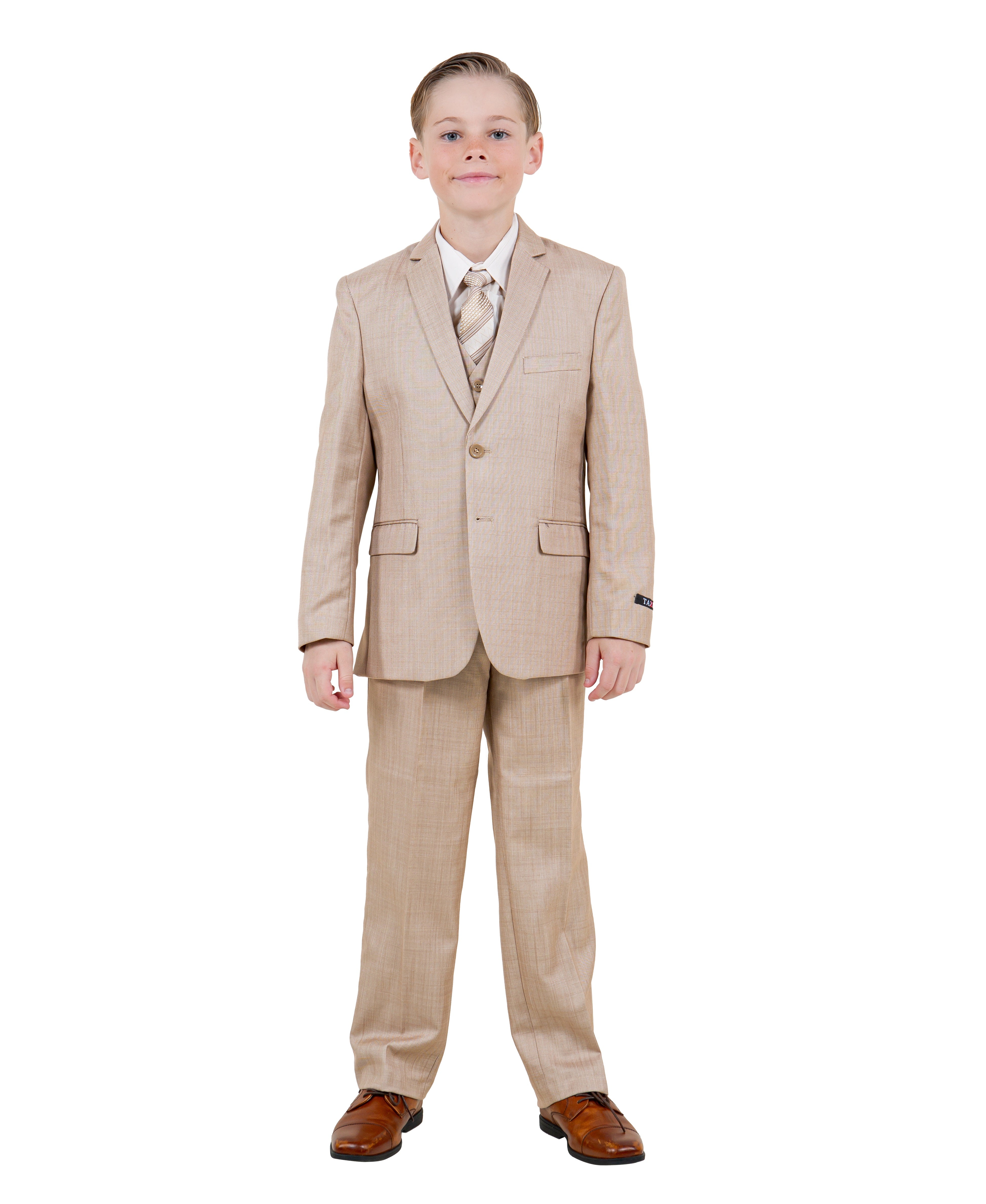 Give your young gentleman the confidence to shine with the Tazzio Boys Sharkskin Dress Suit—a polished, modern look that makes every special moment unforgettable. Whether it’s a wedding, birthday, church event, school recital, or family photos, this suit elevates his style with a timeless, picture-perfect fit.